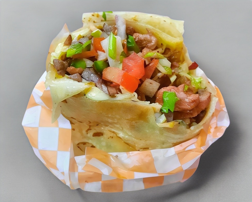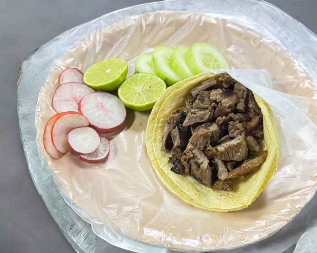 1 pieza de taco en tortilla de maíz con carne (110 g aprox). Se envían por aparte las salsas, cebolla, cilantro y guacamole.