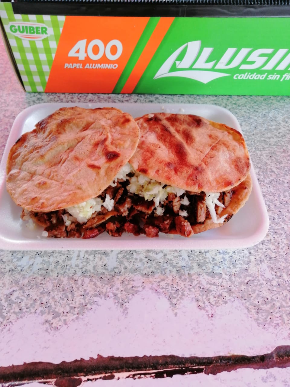 Disfruta de 3 tacos de harina, rellenos de carne,repollo,cebolla,salsa habanera,tomate,aguacate,pepino y limón. Acompañados con medio litro de agua.