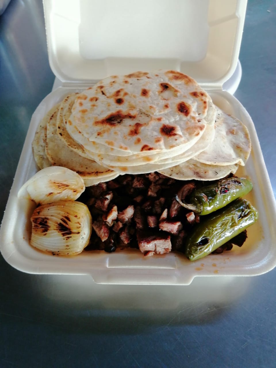 1 Kg. de carne asada, con salsas frescas y tortillas calientitas.