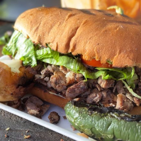 Pan dorado con aderezo, carne asada de RES, lechuga, tomate, aguacate. Acompañada de cebolla asada, chile tatemado y limón para darle el toque perfecto. Sabor auténtico y bien servido.