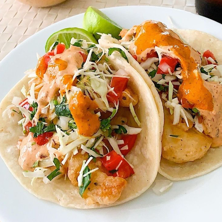 Tacos de camarón y verduras