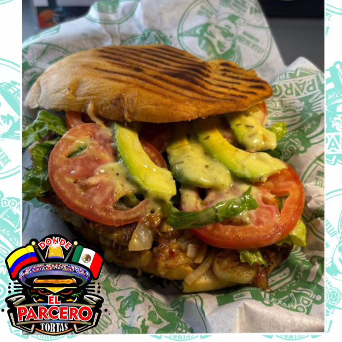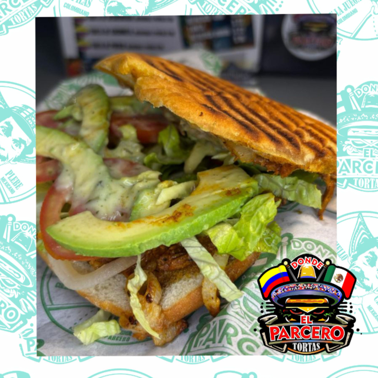 10 gr de puerco, 30 gr de costra de queso, aguacate, tomate, cebolla, lechuga