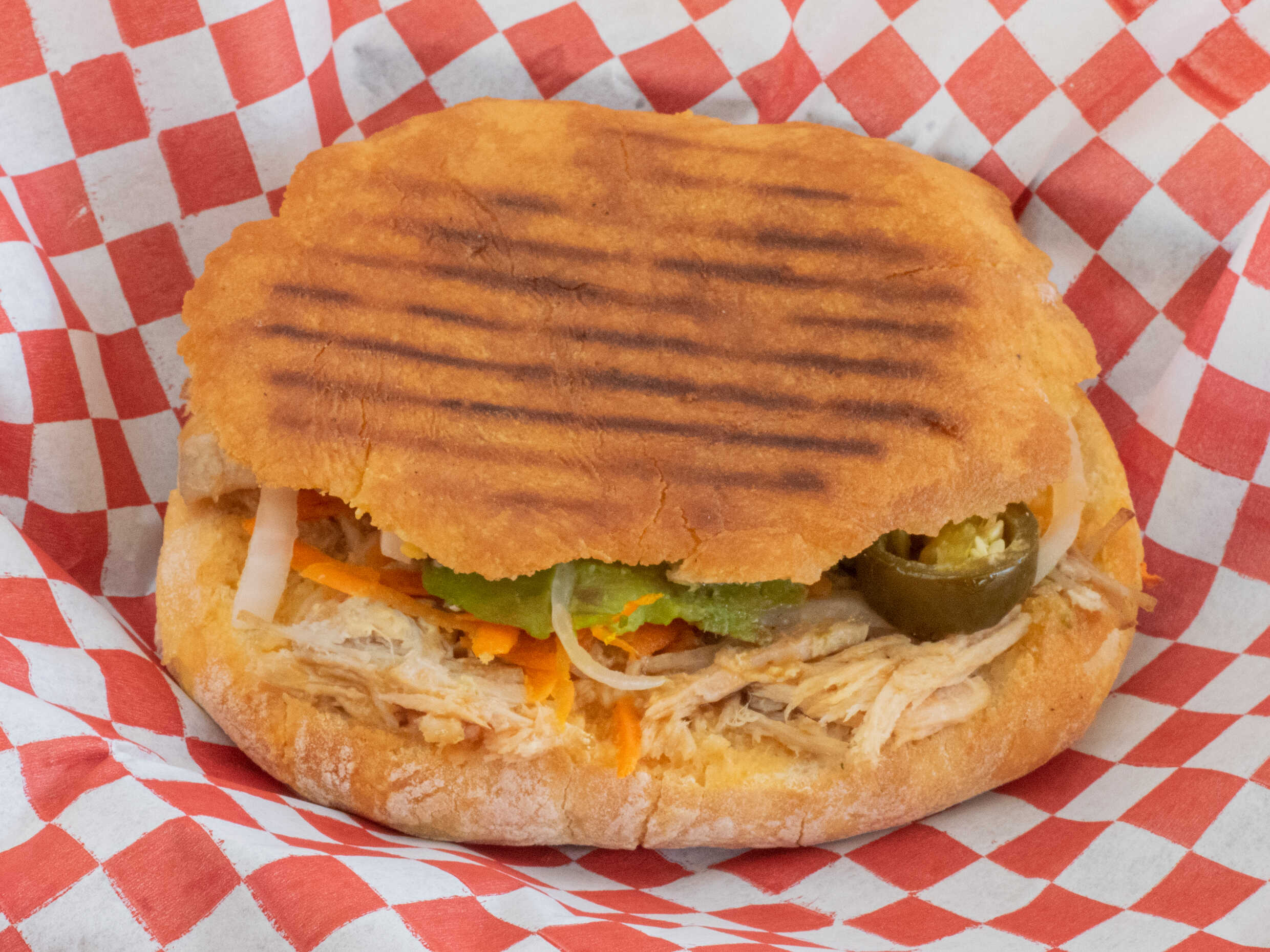 Carne de cerdo, zanahoria rallada, cebolla, aguacate, chile jalapeño y delicioso gravy tradicional de la casa.