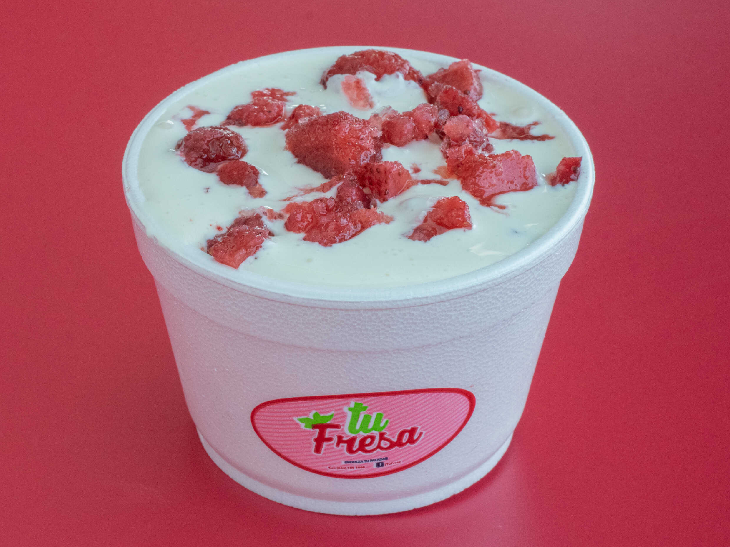 Fresas con Crema 1/2 Litro en envase de medio litro.