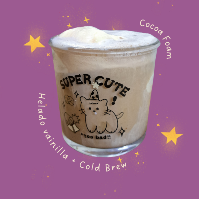 Helado de vainilla, espresso cold brew, cocoa foam.