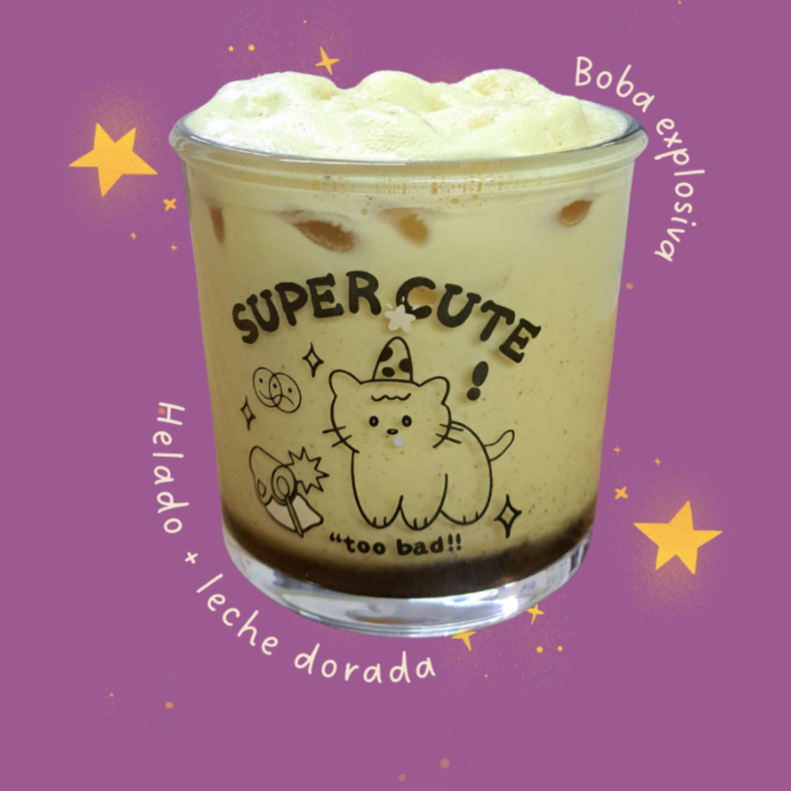 Boba, helado de vainilla, mezcla de leche dorada y miel.