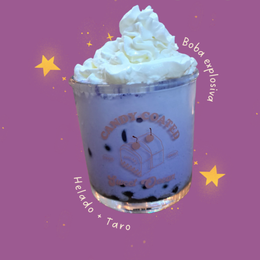 Boba, taro, helado de vainilla y leche.
