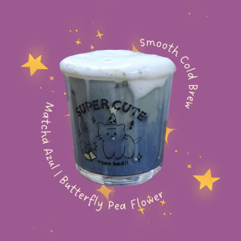 Esspreso cold brew, matcha azul, milk foam.