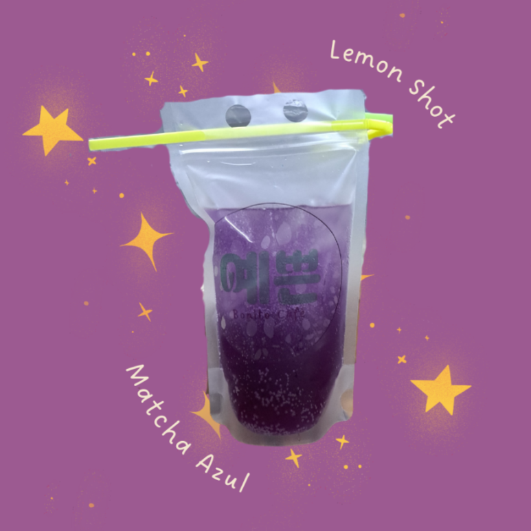 Soda colorida a base de matcha azul y limón.