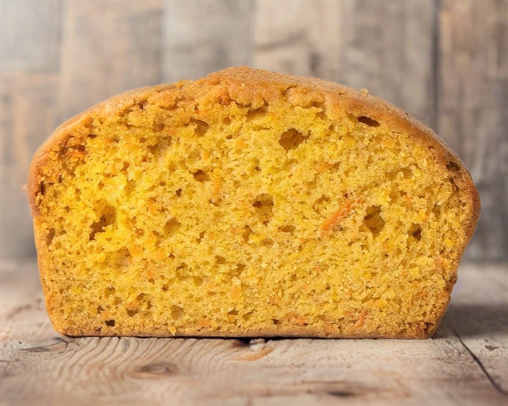 Disfruta una deliciosa rebanada de panqué de zanahoria.