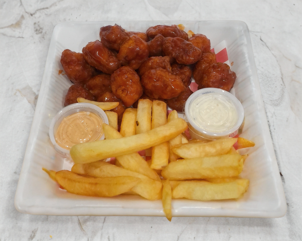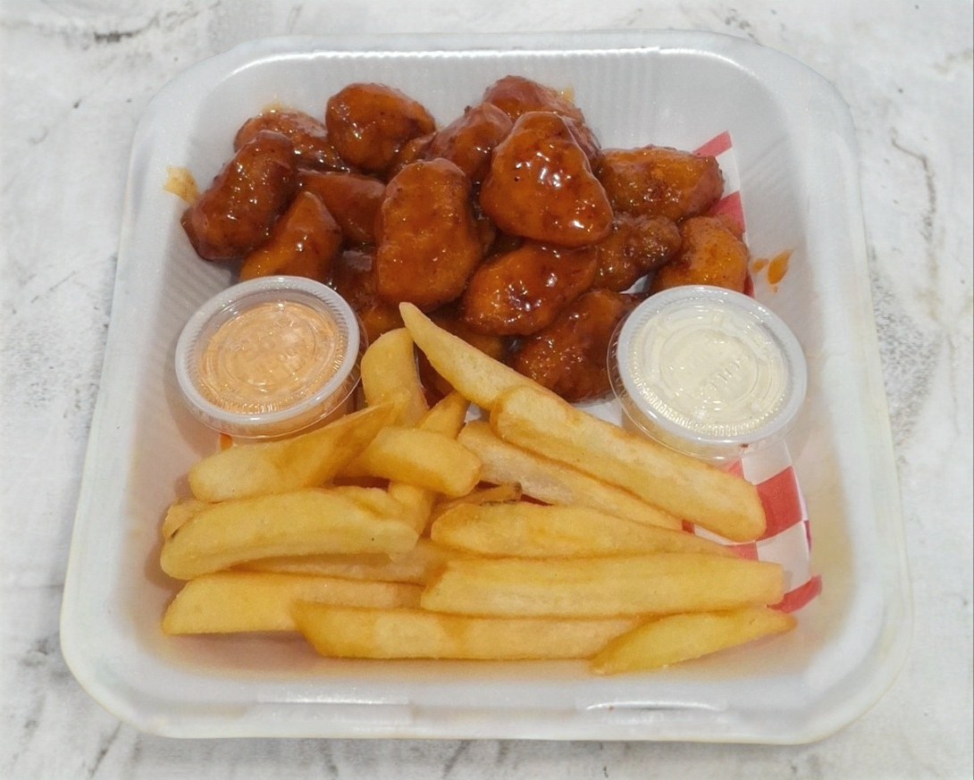 300 g de boneless en salsa de tu elección acompañados de papas a la francesa