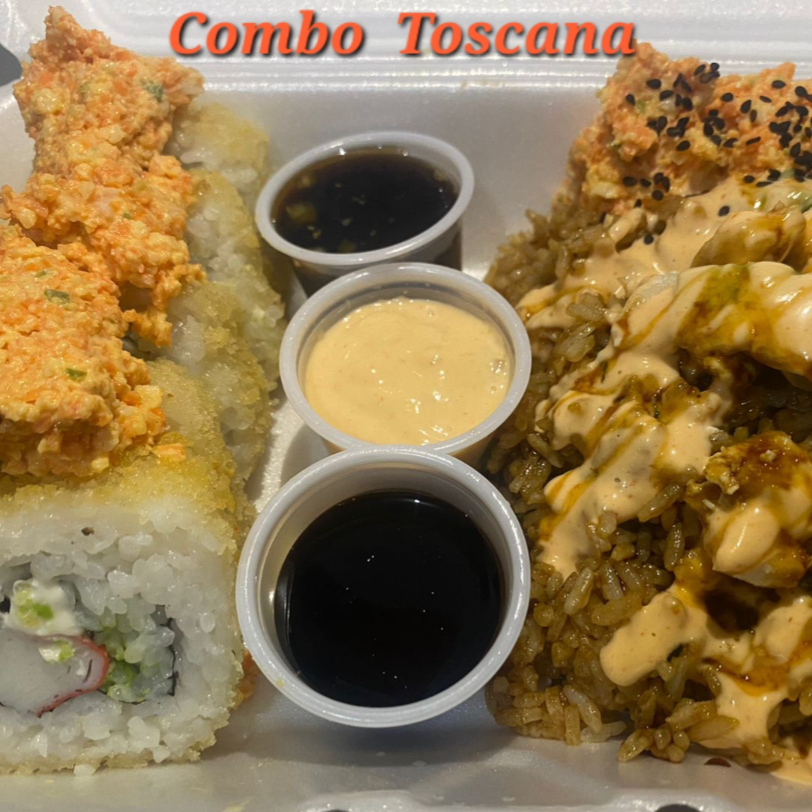 Arroz frito, pollo, res, aguacate, spicy, anguila, ensalda surimi y ajonjoli