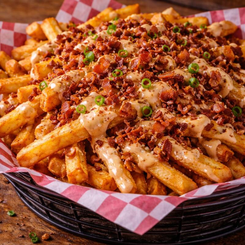 Papas a la francesa bañadas en salsa de tocino y chipotle 300gr