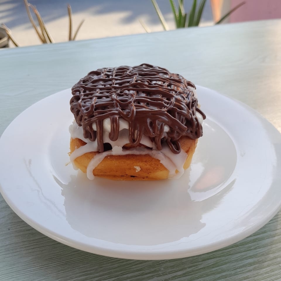 Rol de canela cubierto de glaseado de queso crema y nutella