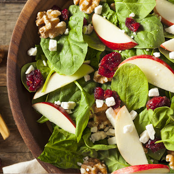 Mix de hojas, queso panela, jitomate cherry, arándanos secos, pera, manzana y crotones.