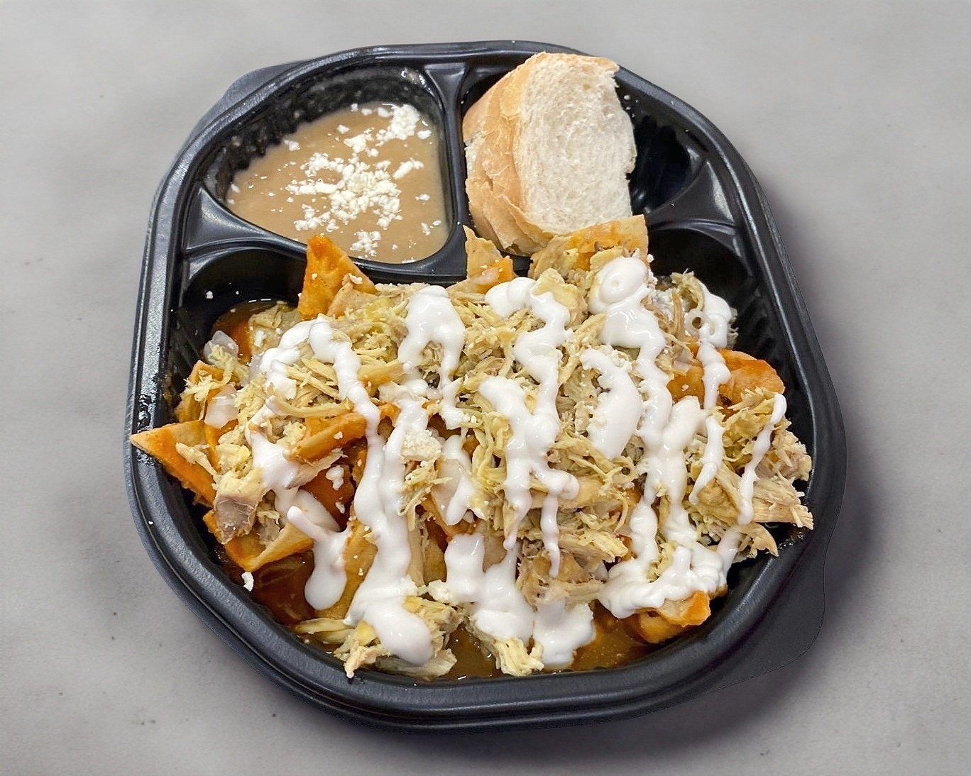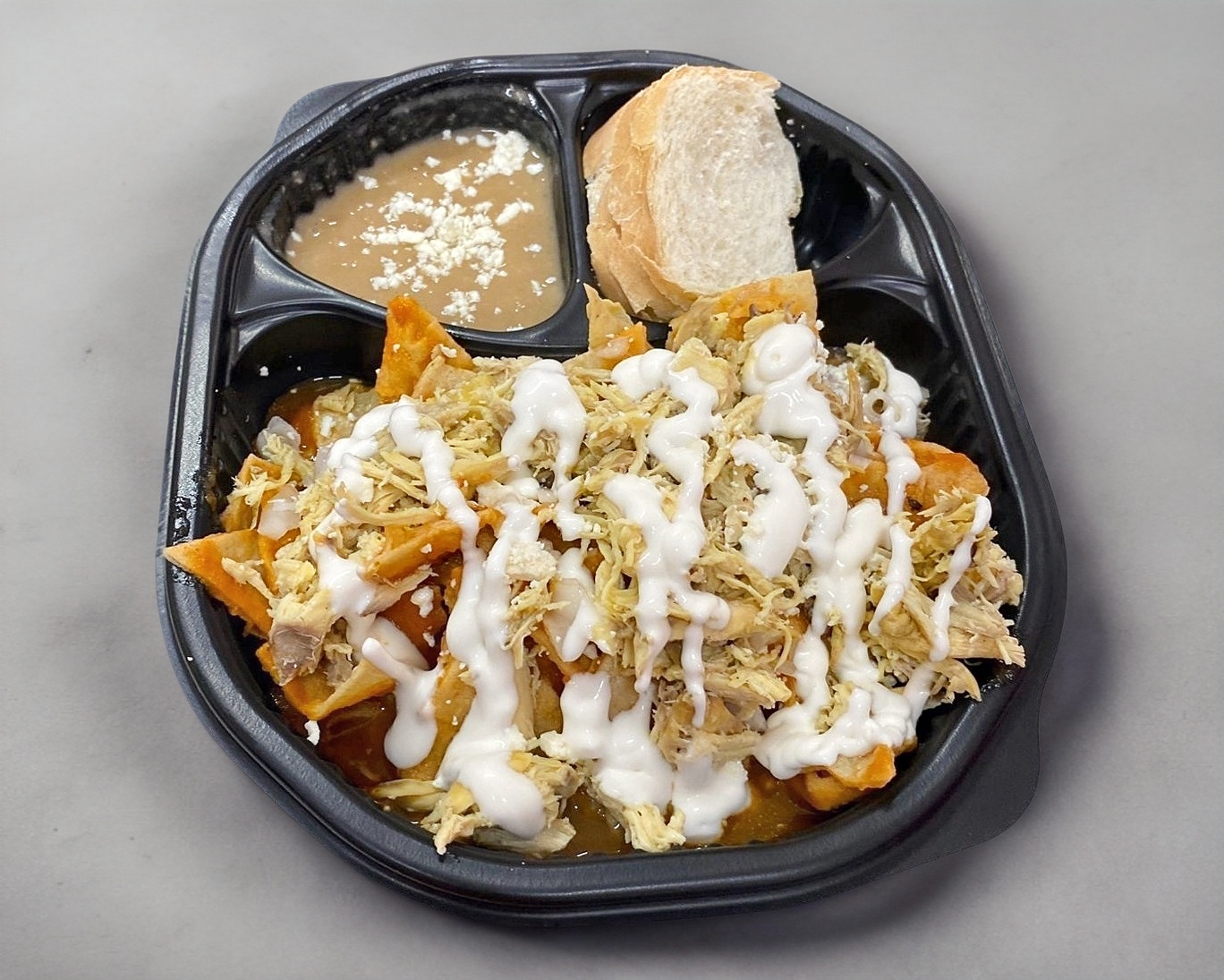 Huevos al Gusto, acompañado de frijol, pan y 5 tortillas.