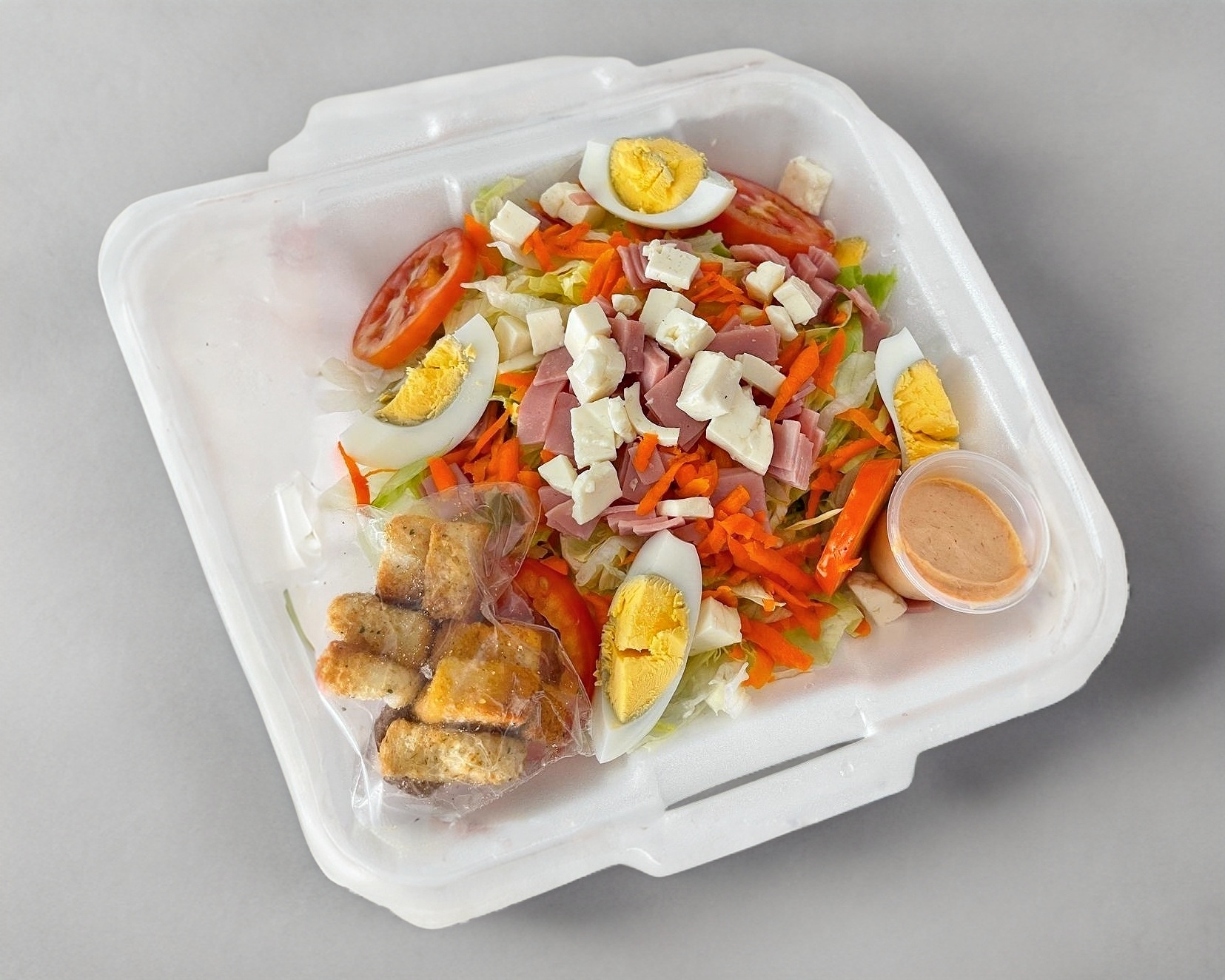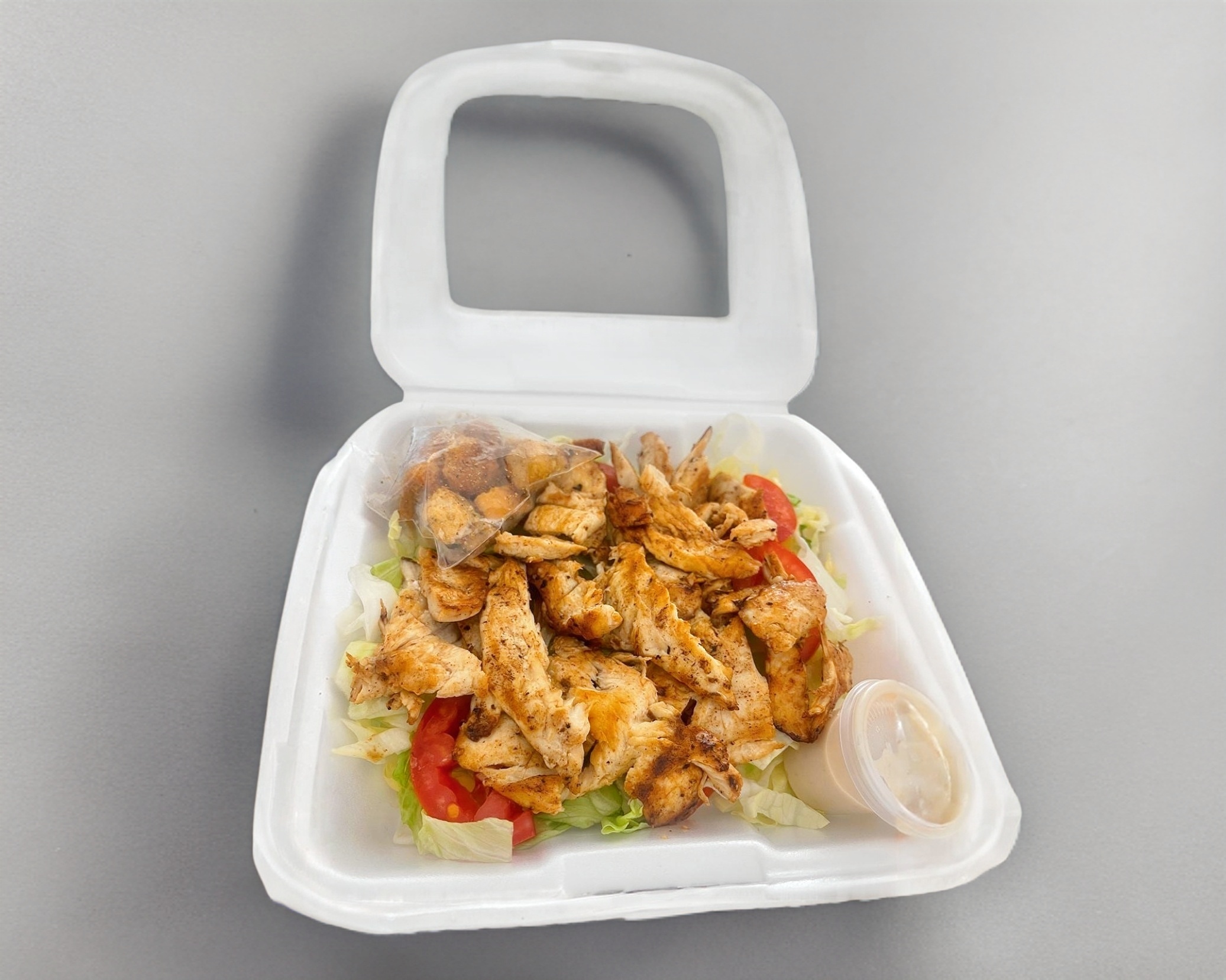 aderezo cesar, lechuga, jitomate, queso panela, crotones