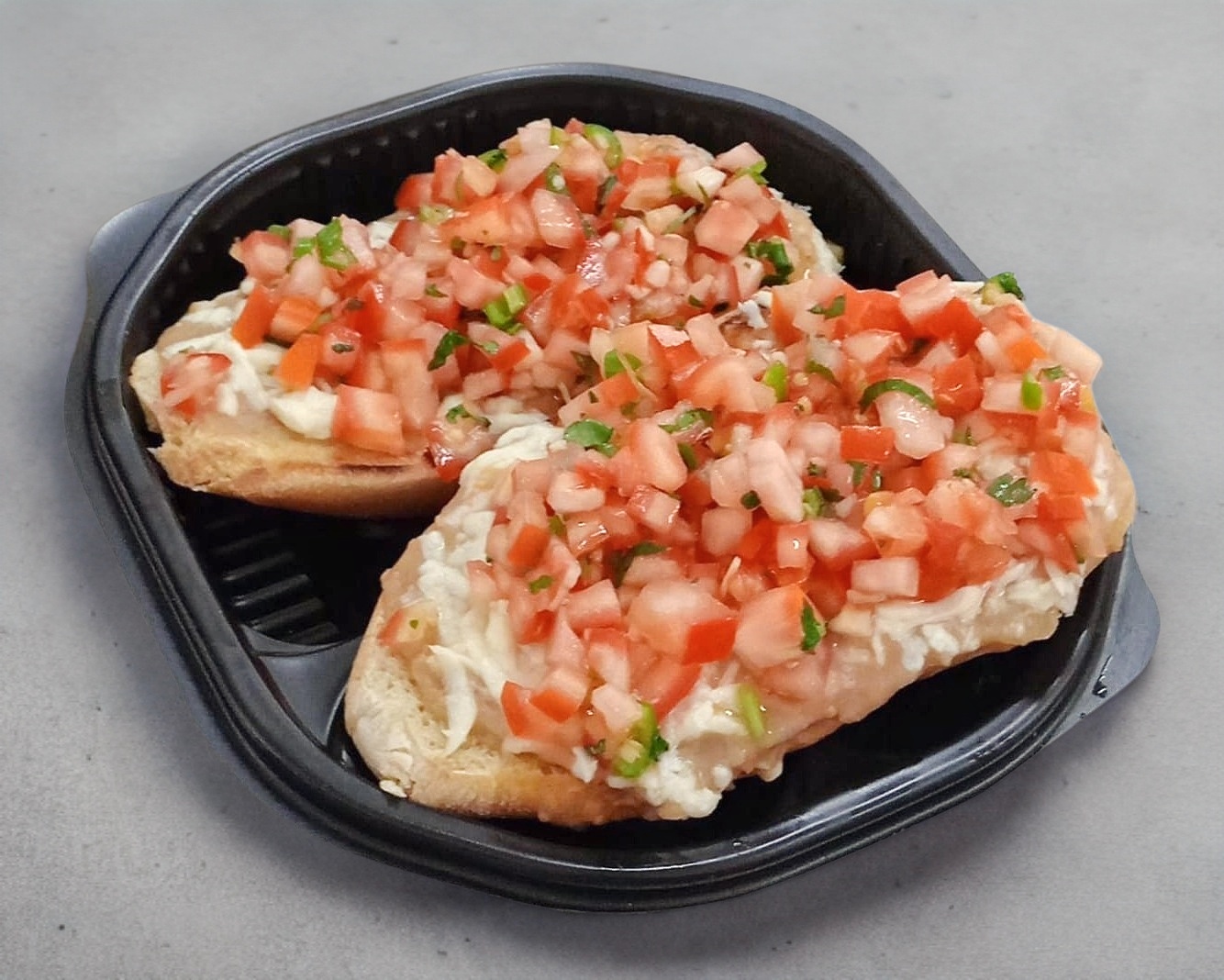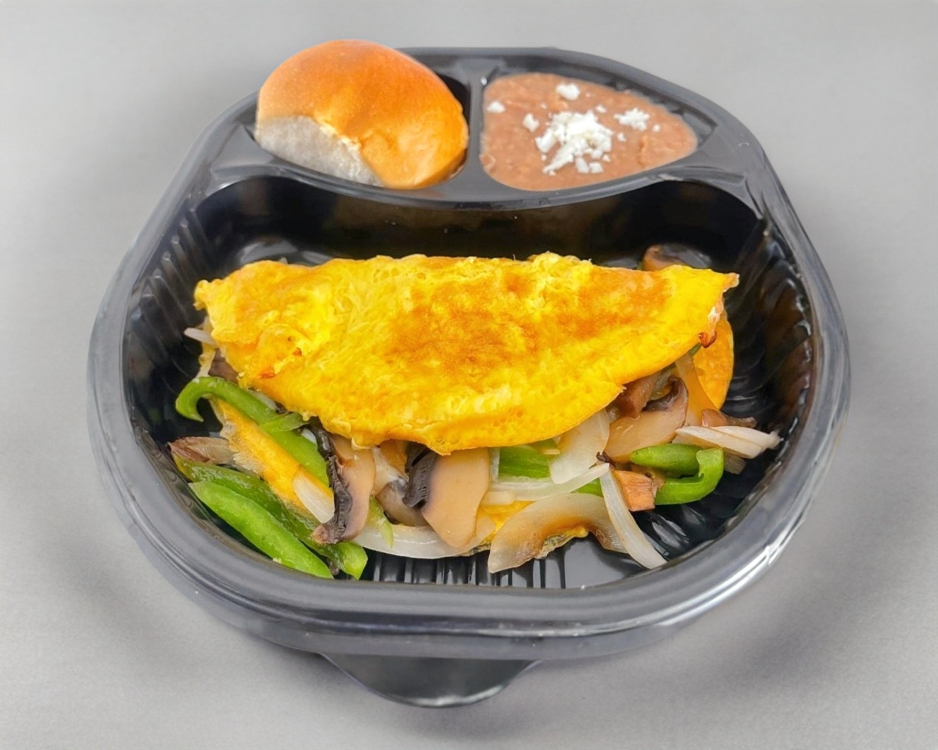 pimiento, champiñon, cebolla. acompañado de frijol y pan