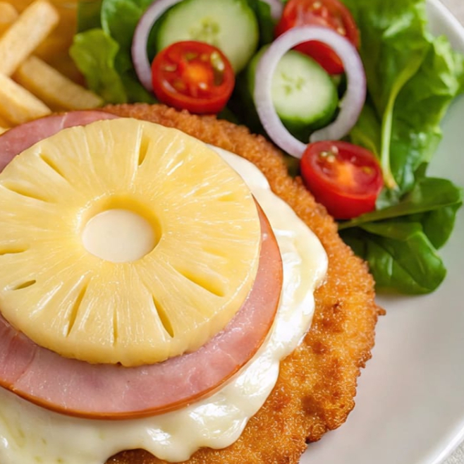 Milanesa de pollo Hawaiana