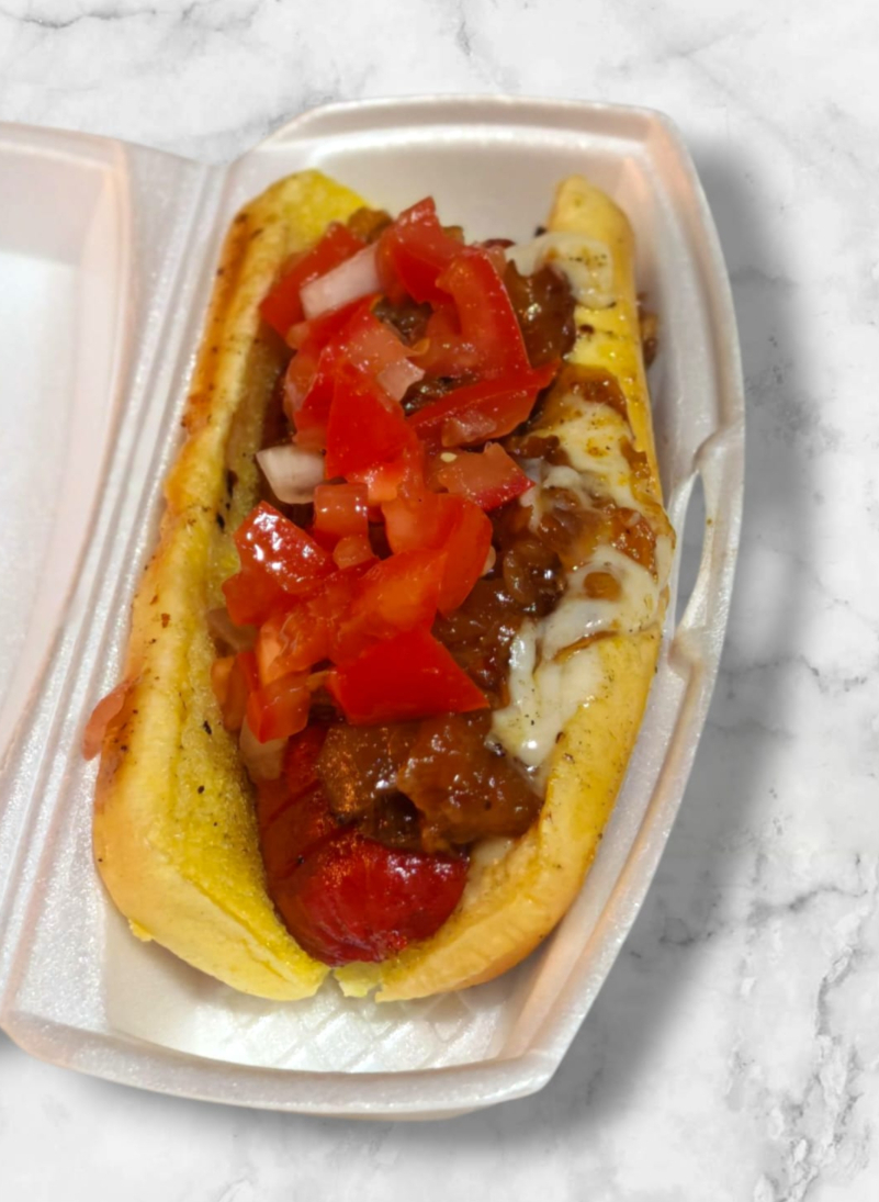 Dogo clásico con salchicha, acompañado de jitomate y cebolla por separado si lo deseas.