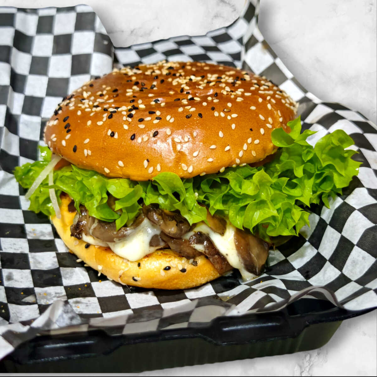 CARNE DE RES, QUESO MOZZARELLA, ADEREZO JUMI, TOCINO, CHAMPIÑONES