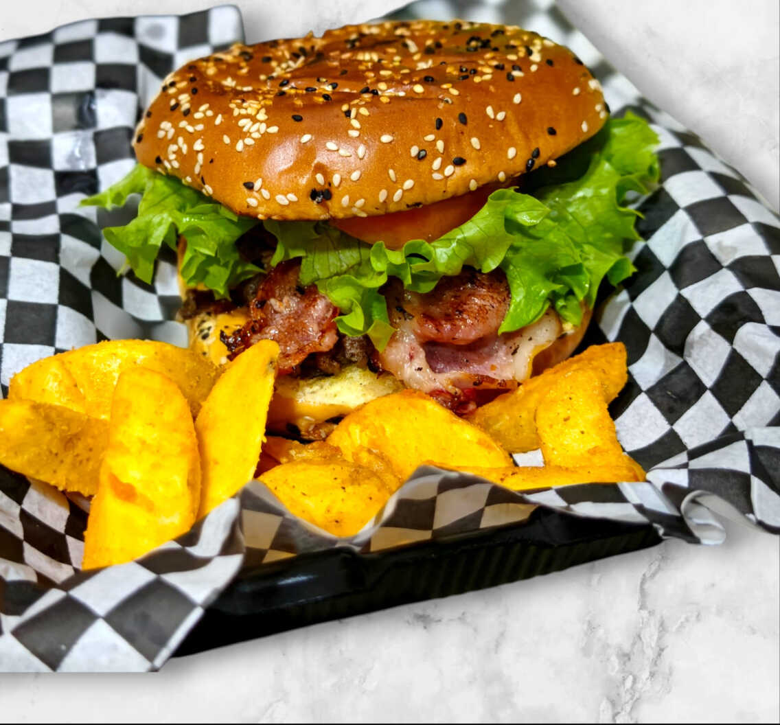 Burguer Mar y Tierra*1 + PAPAS FRITAS*1