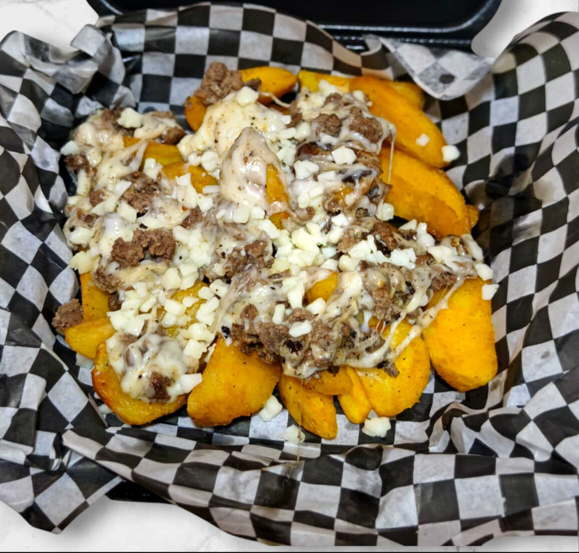 PAPAS GAJO CON CARNE DE HAMBURGUESA CON QUESO MOZARELLA