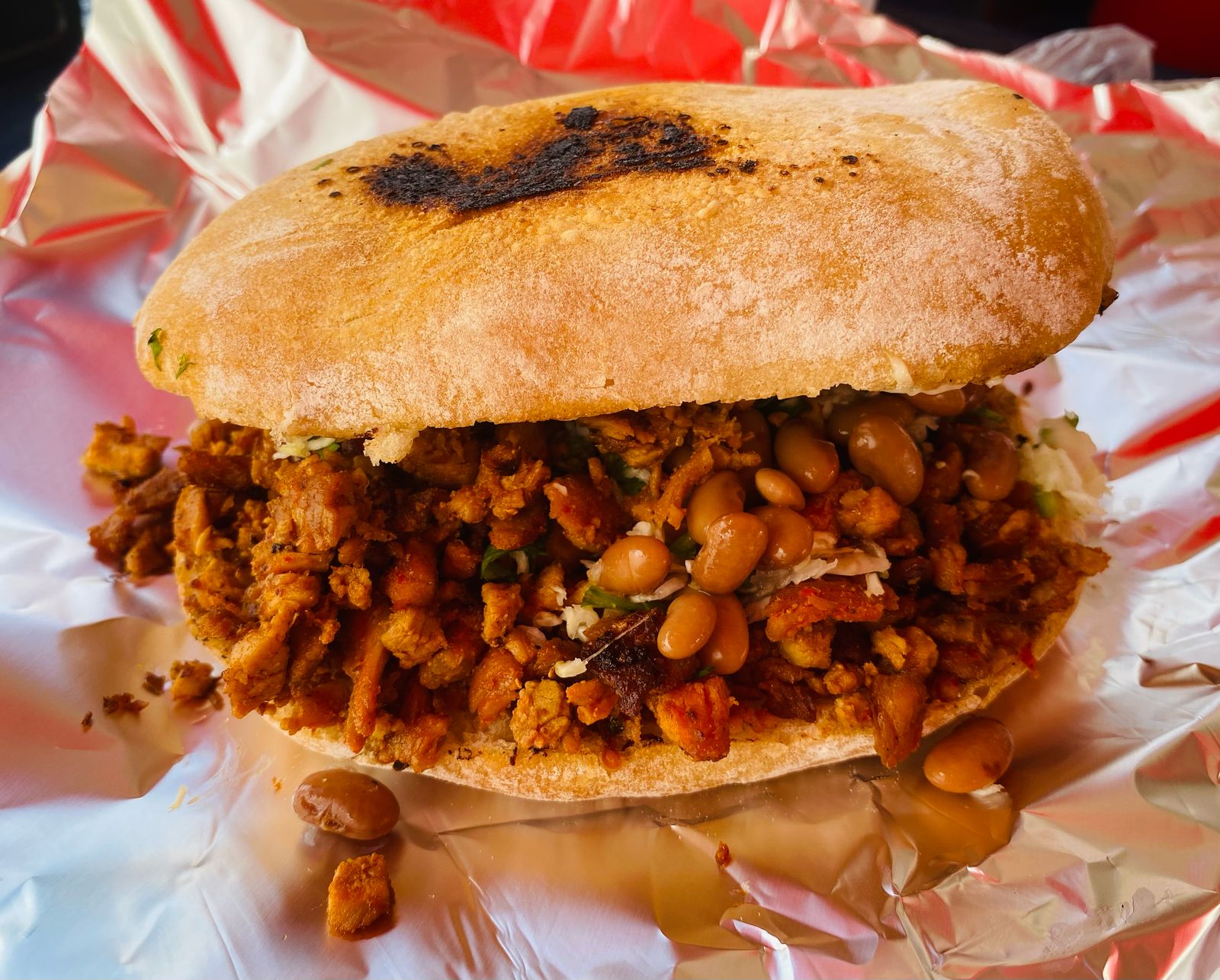 Torta de Cochinita ( 1 torta) + Agua de Horchata en vaso 500 ml
