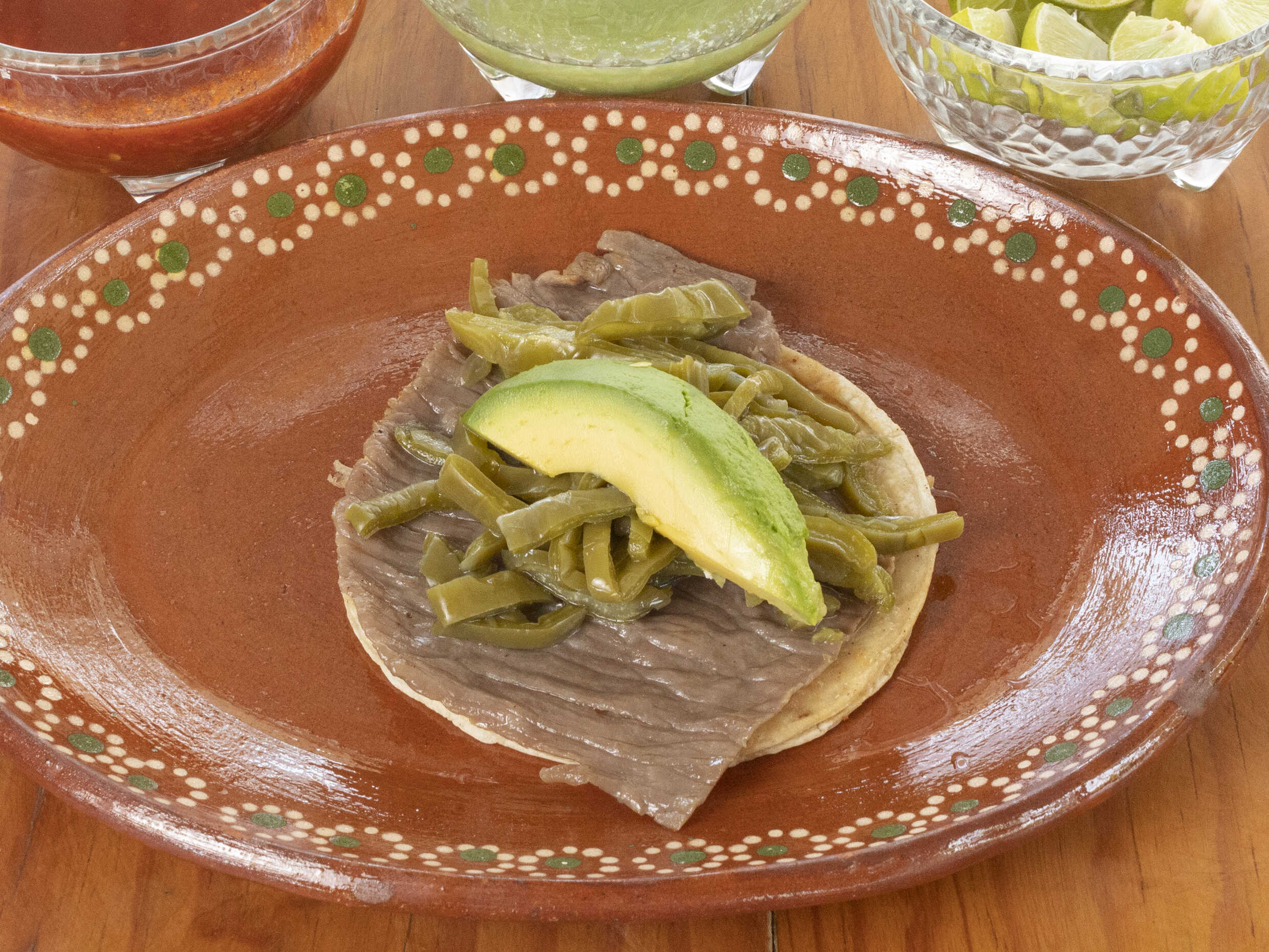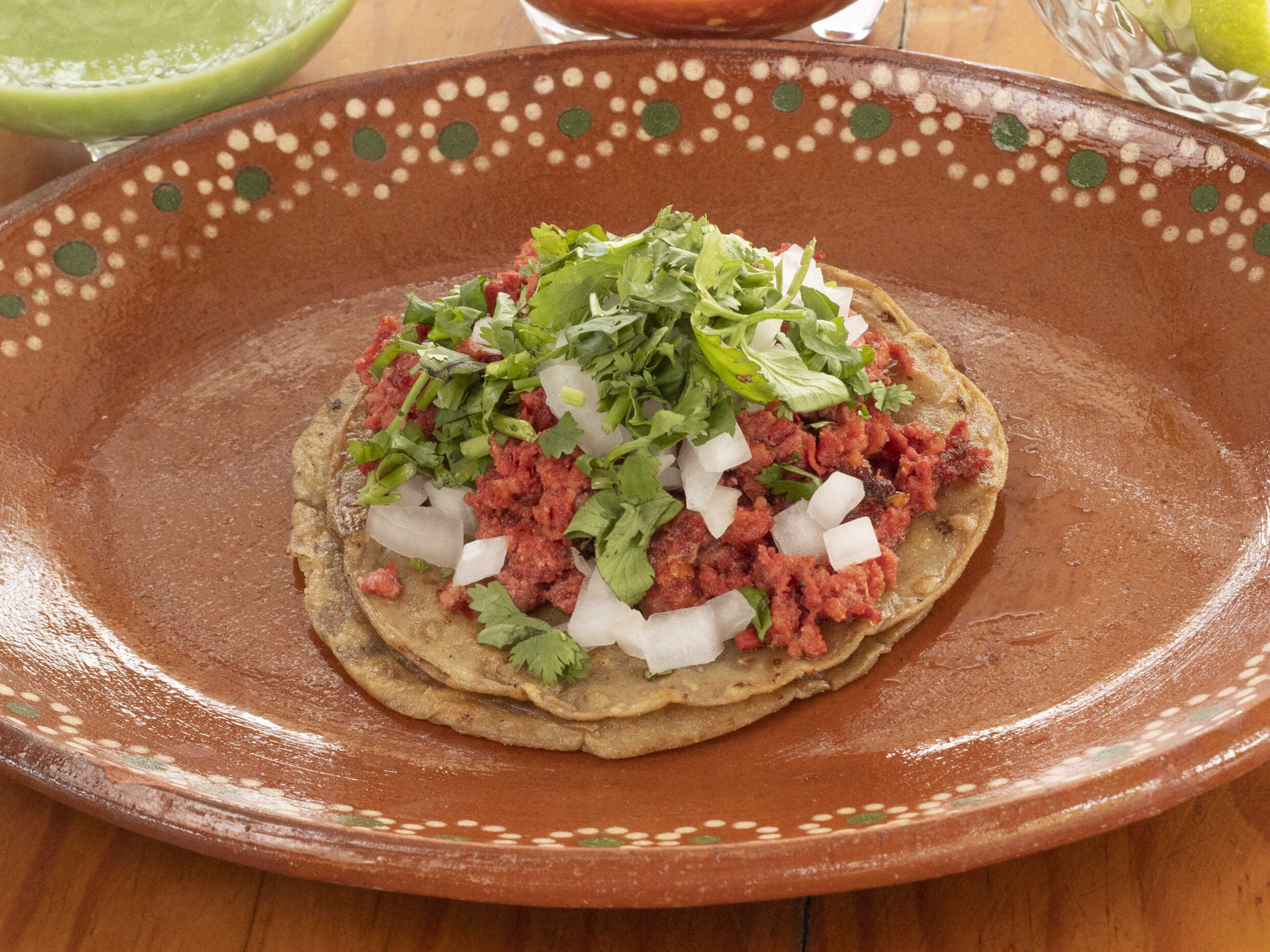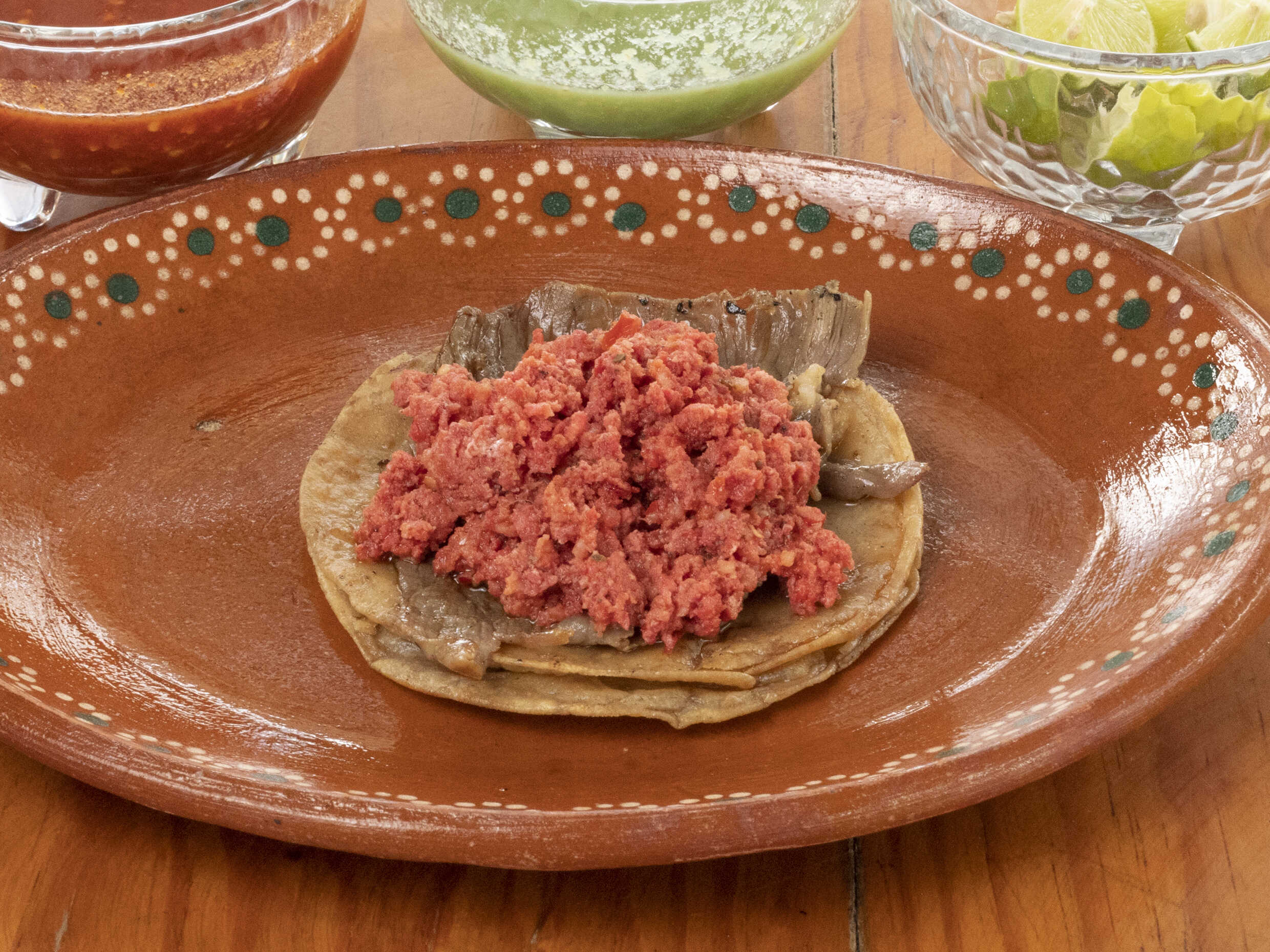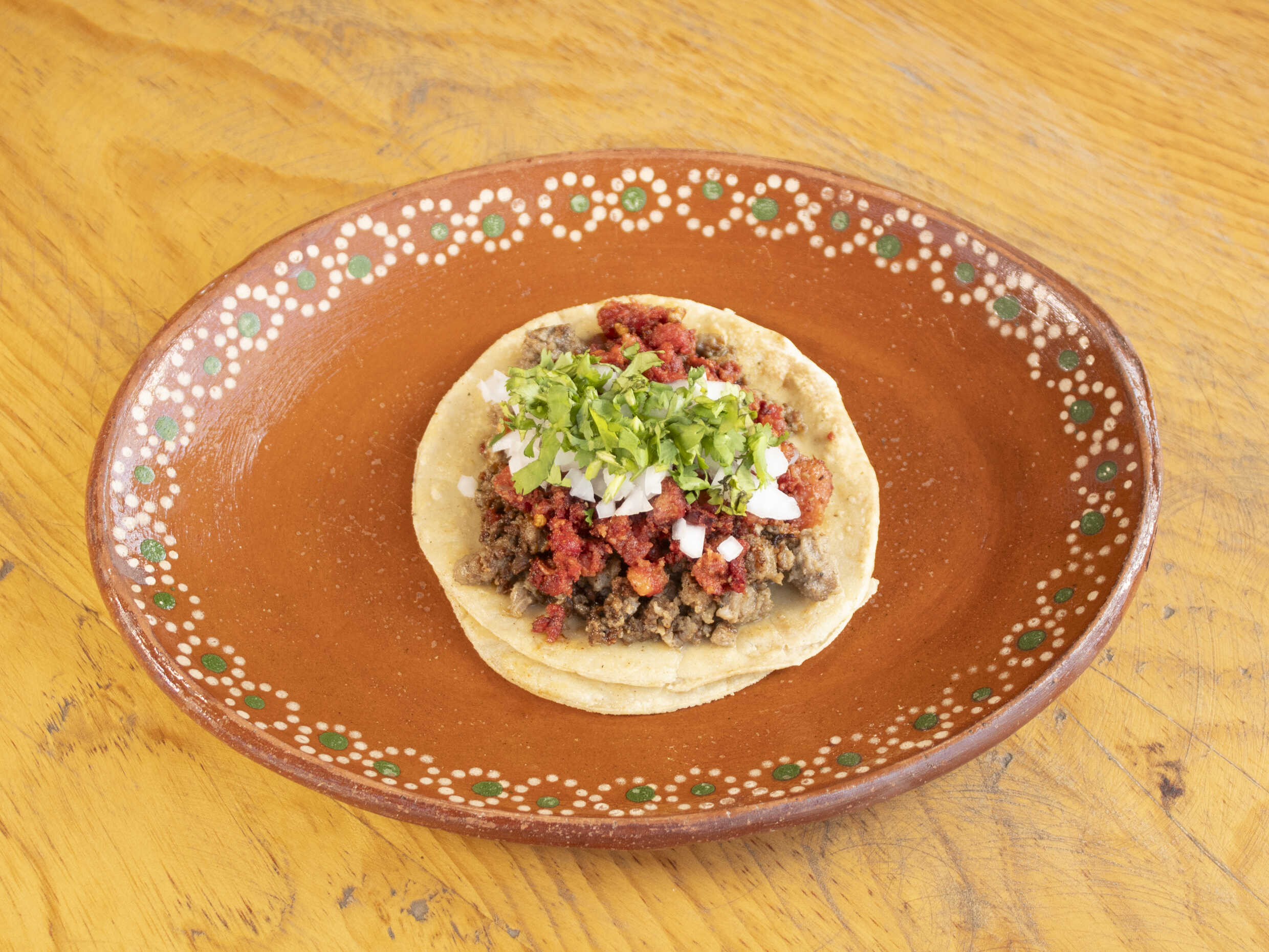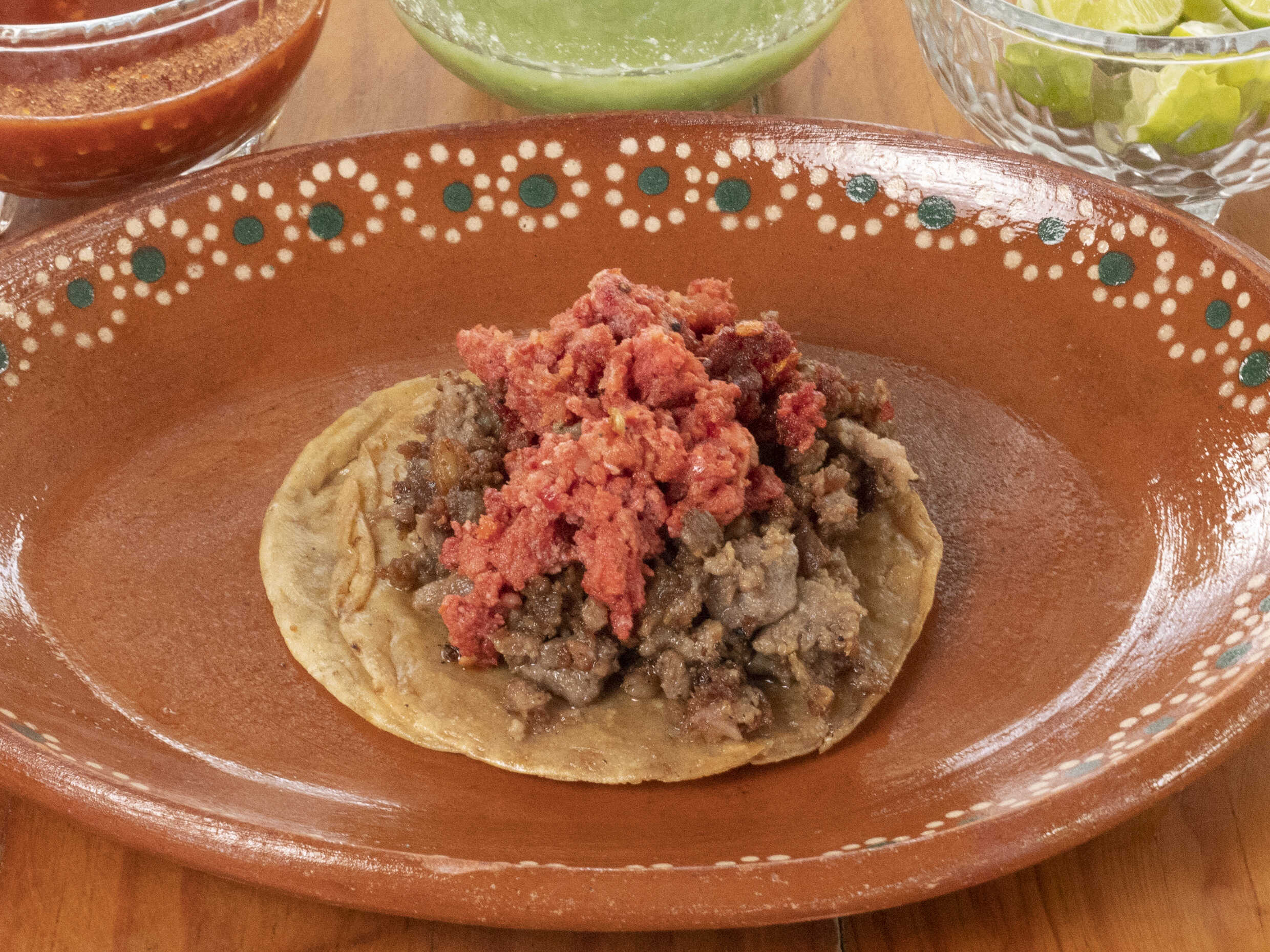 Taco a base de harina de maiz Campechano Cecina con Suadero
