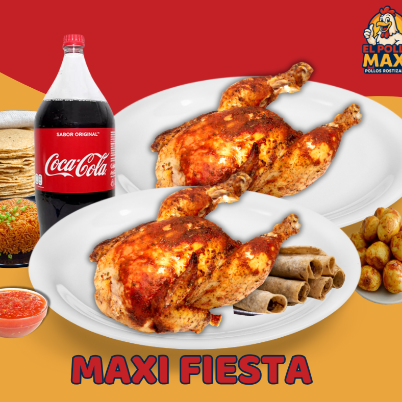 Incluye: 2 pollos, 2 complementos, orden de chiles, 5 tacos dorados, salsa, tortillas, refresco 2 L.