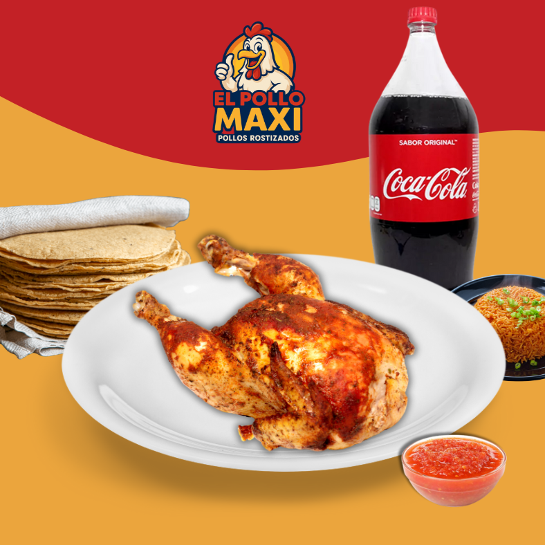 Incluye: 1 pollo, 1 complemento, orden de chiles, tortillas y salsa Coca Cola 2 L.