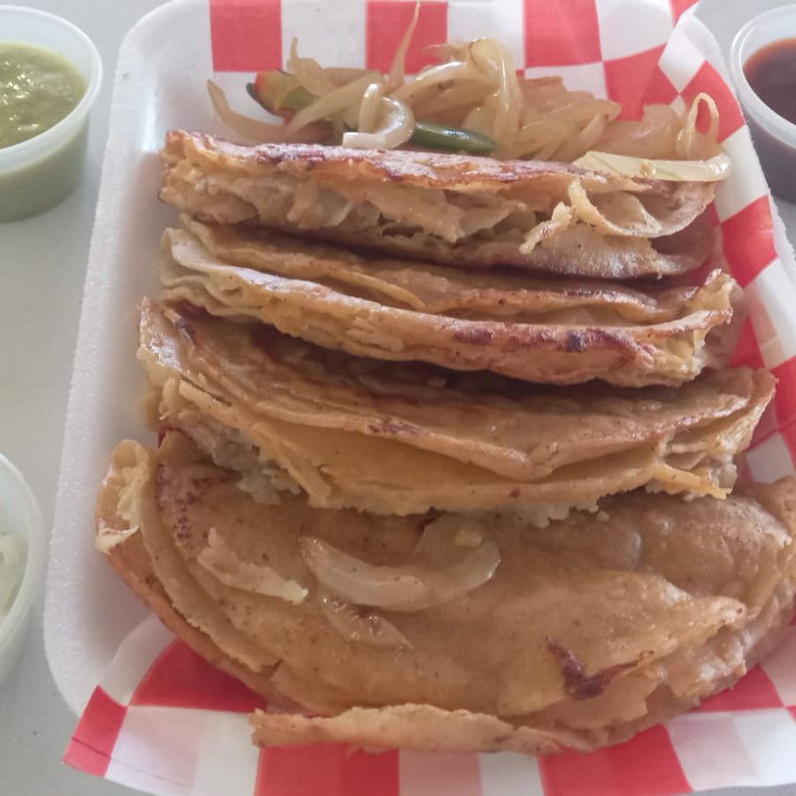 3 tacos de barbacoa, 1 agua y un consomé