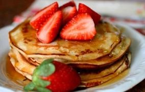Los tradicionales hotcakes acompañados de fruta de temporada.