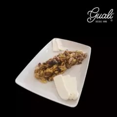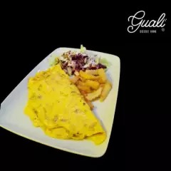 rico omelete con queso de cabra, cherry bañado con salsa al pesto