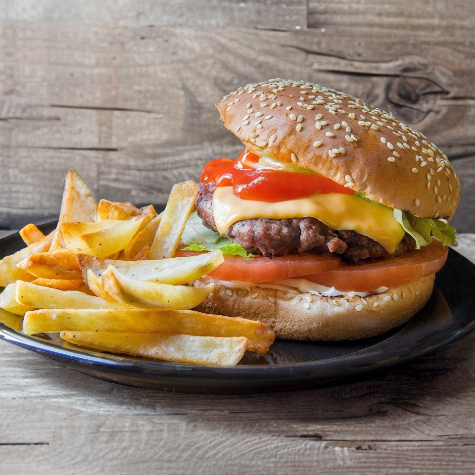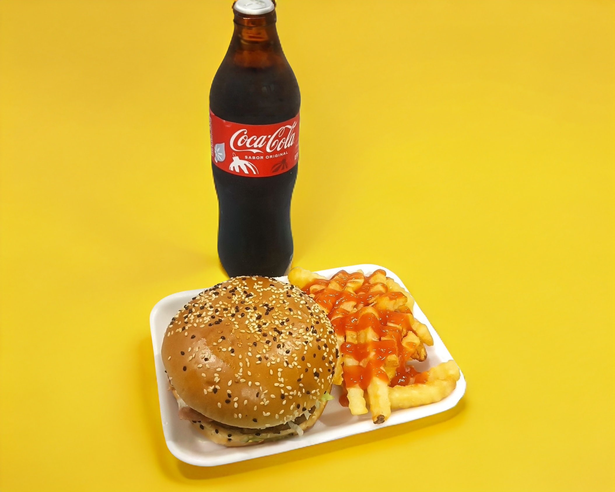 Coca Cola*1 + Hamburguesa con papas y keso*1