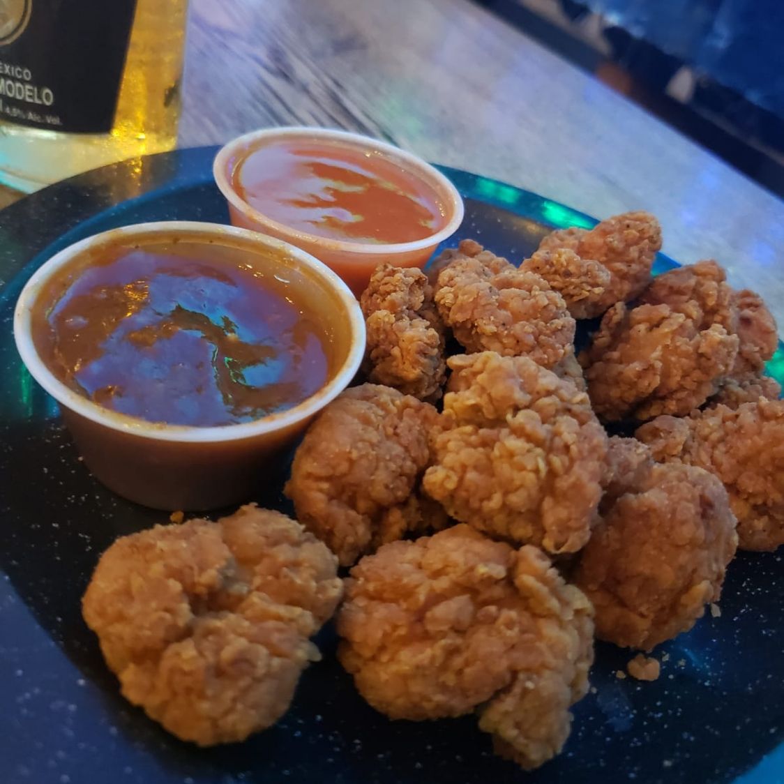Exquisitas y crujientes de ulala 350grs. sazonadas con lemon peppers. Incluye salsa catsup, mostaza y mayonesa.