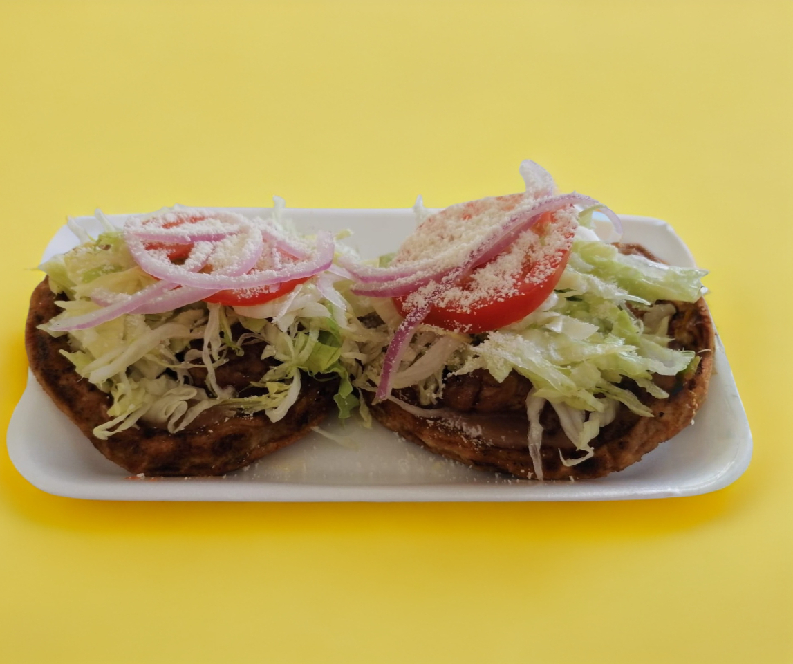 Rico sope de masa con carne, lechuga, jitomate, queso y jugo rojo de la receta secreta CDM