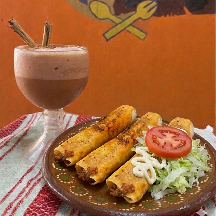 Tacos Dorados en Aceite con Papa o Carne bañados en salsa roja