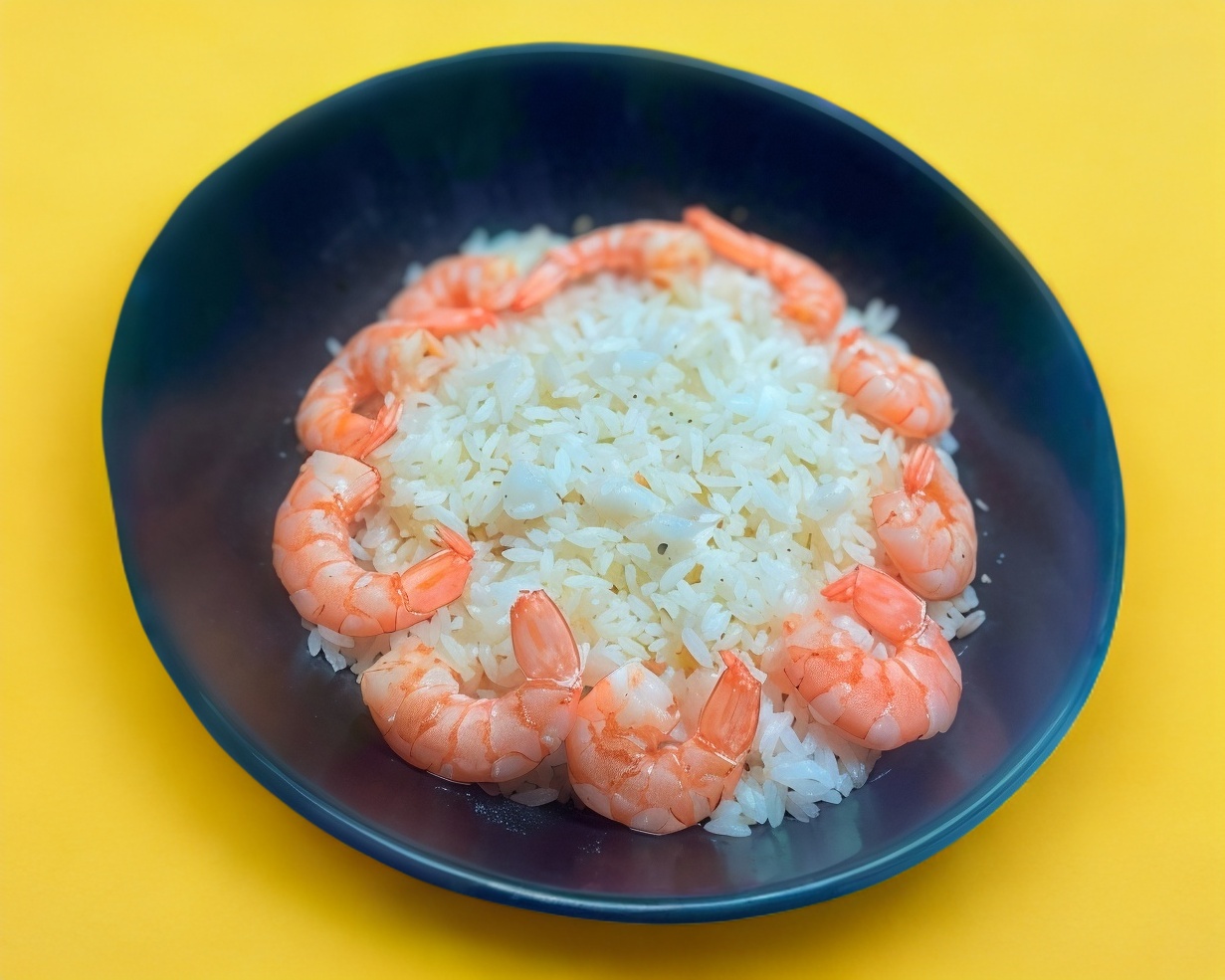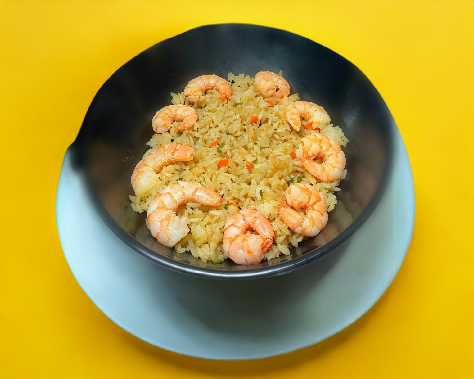 Arroz salteado con vegetales y salsa de soya, con camarón.