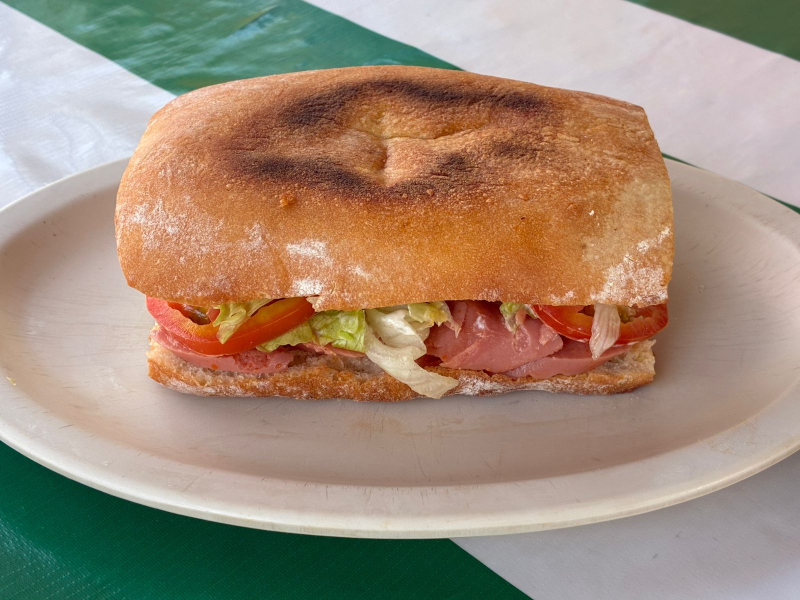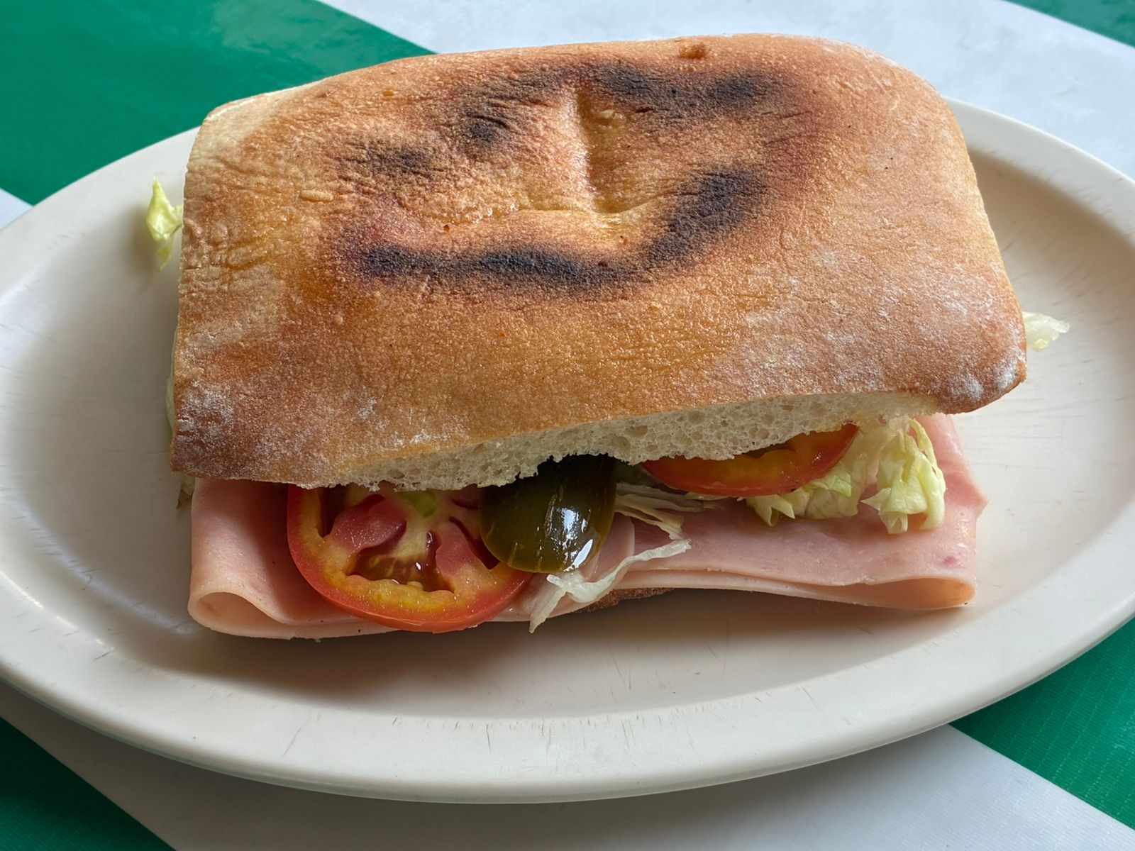 Sencilla y tradicional, con rebanadas de jamón (60 g), queso, verduras frescas