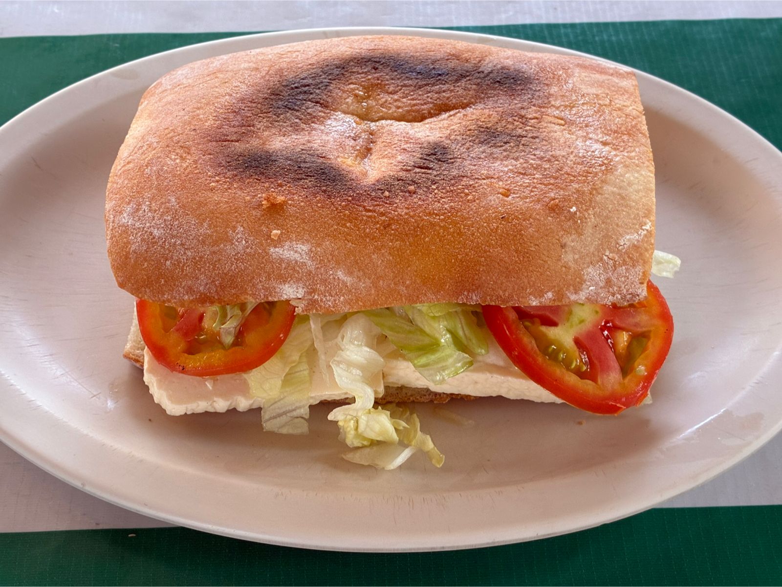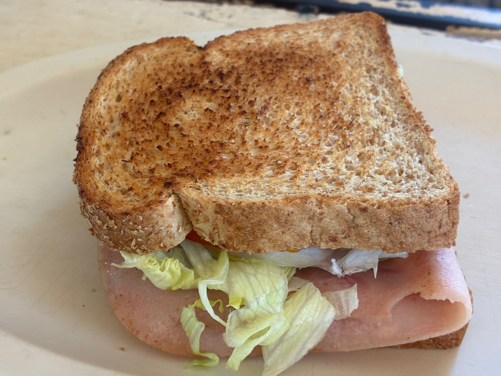 Clásico y ligero, con rebanadas de jamón (60 g) y queso, acompañadas de lechuga, jitomate y mayonesa.
