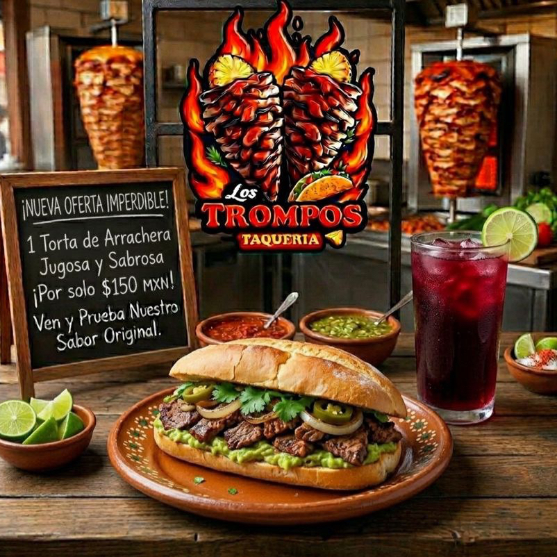 Torta de Pastor y Cheddar La fusión perfecta entre lo tradicional y lo cremoso. Esta torta se sirve en una telera clásica ligeramente tostada, que resguarda 100 gramos de carne al pastor marinada en su emblemático adobo de chiles y especias, logrando ese equilibrio ideal entre suavidad y bordes doraditos. La carne se cubre con 100 gramos de queso cheddar fundido, que se entrelaza con el adobo para