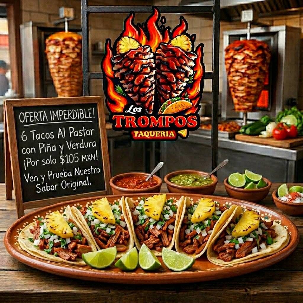 Taco de Pastor El favorito de todos: 50 gramos de carne al pastor marinada en el tradicional adobo de chiles y achiote, servida en una tortilla de maíz calentada con manteca para realzar su sabor y jugosidad. ¡El balance perfecto entre especias y tradición!