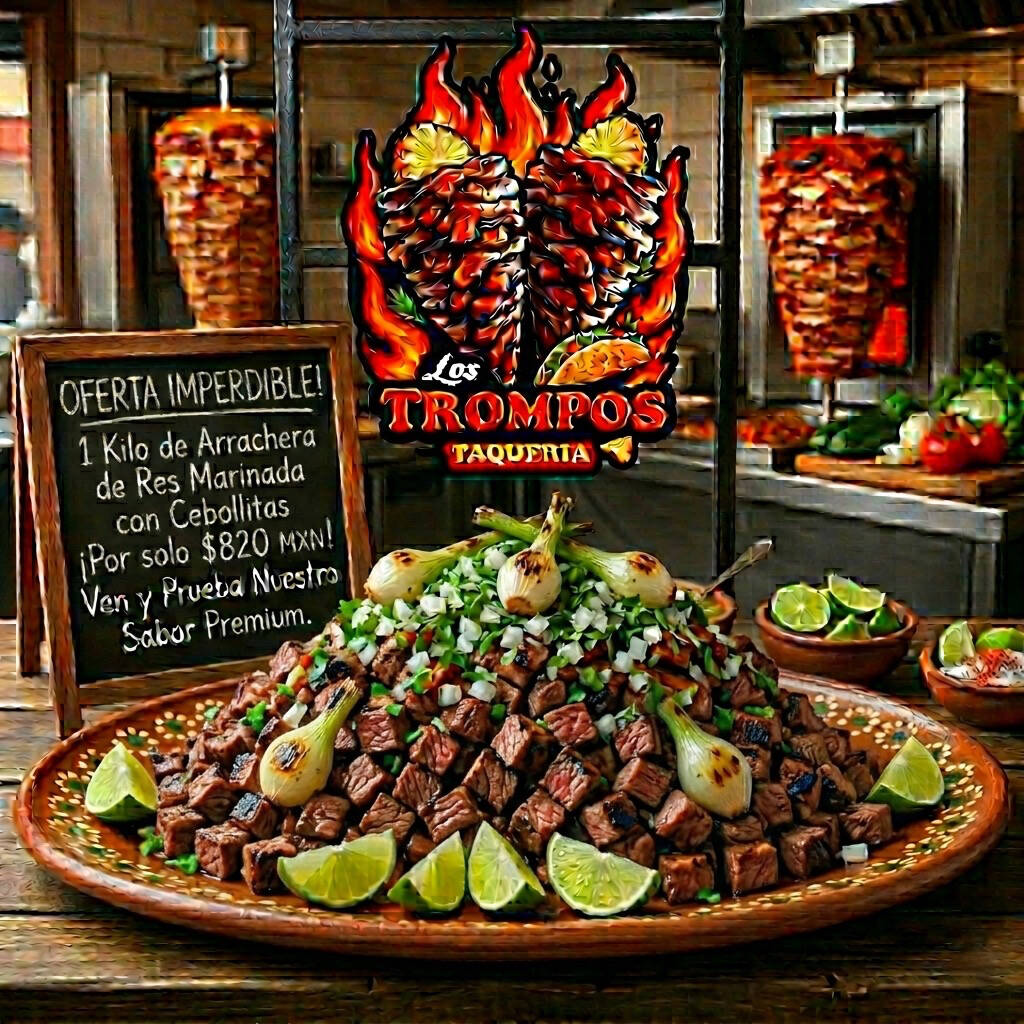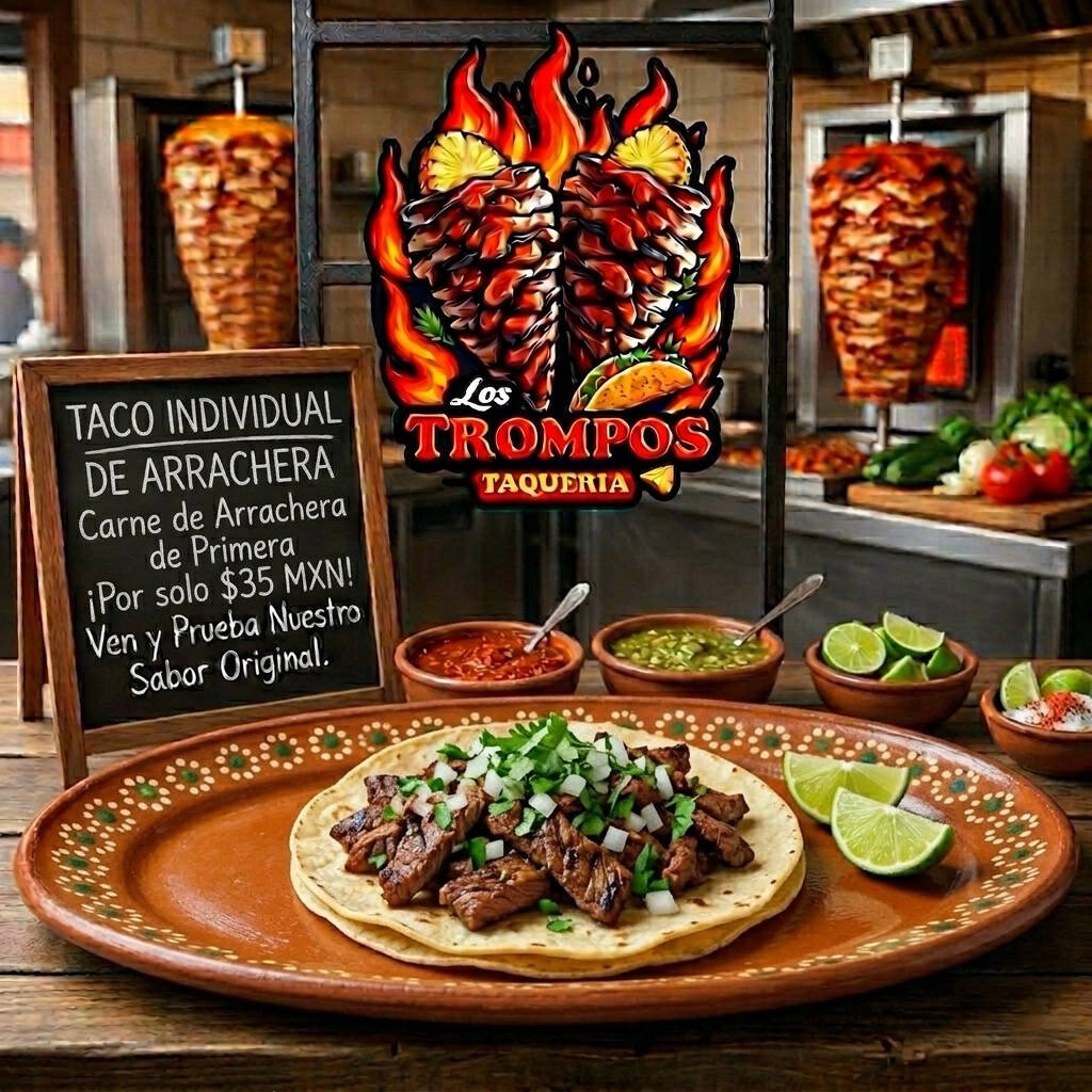 Taco de Arrachera: ¡Sabor de Verdad! Si buscas el auténtico sabor de una buena fonda, este taco es para ti. Sencillo, pero con todo el carácter. * Tortilla con Manteca: Calentada a la plancha con un toque de manteca para que quede suave, con brillo y ese sabor irresistible. * 50g de Arrachera: Carne de res de primera, jugosa y sazonada en su punto. El balance perfecto entre suavidad y sabor. Un cl