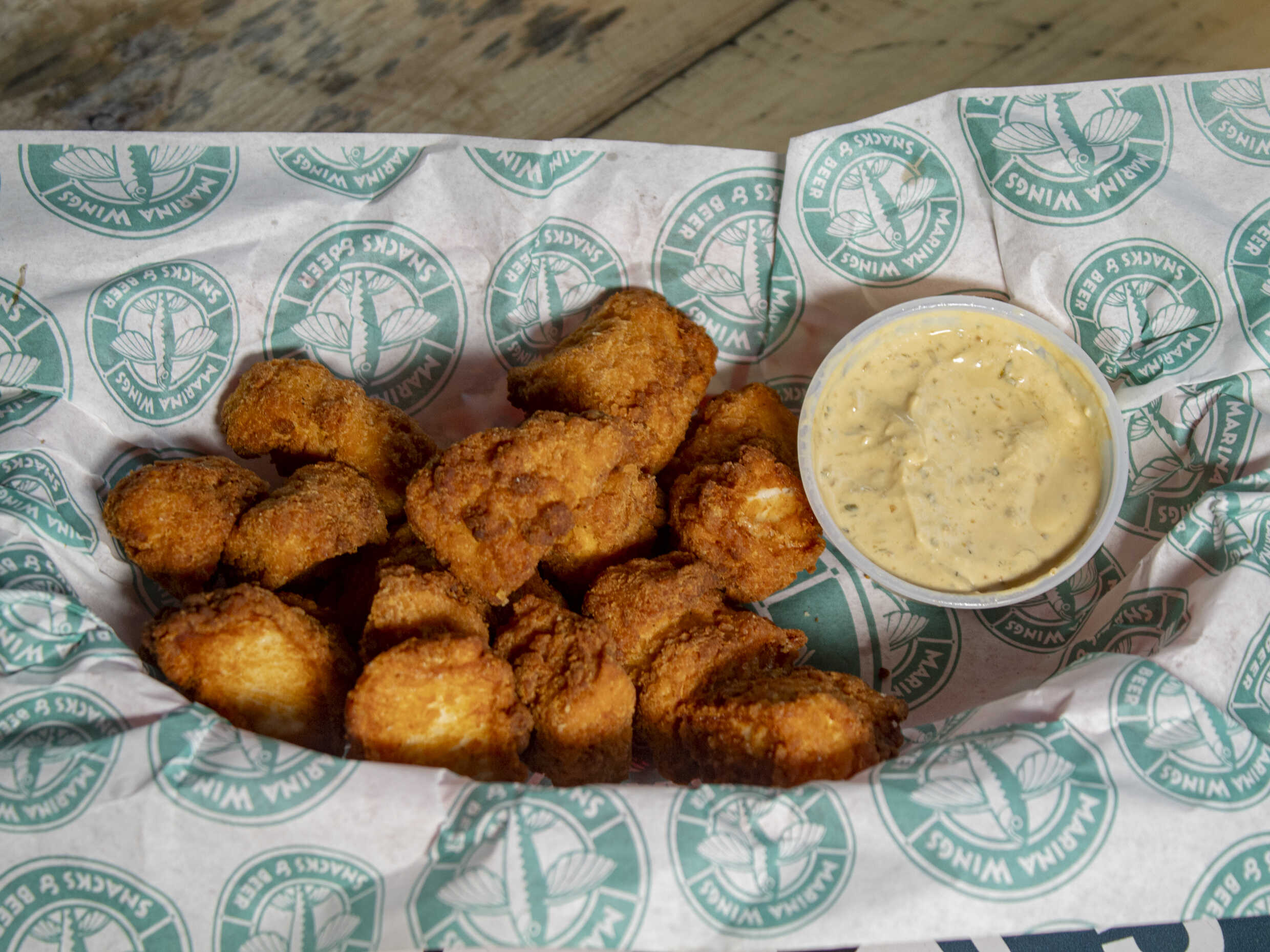 (8 piezas pequeñas)Trozo de pechuga de pollo bañada en tu salsa favorita INCLUIDA