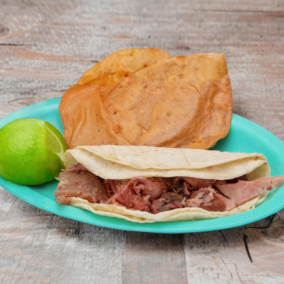 Carnitas250grs de surtida, 2 tostadas, tortillas*1 + Litro de Agua*1