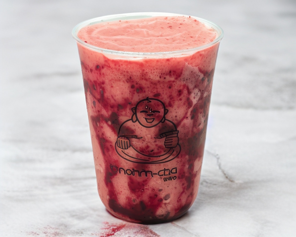 No incluye tapioca. Frappe a base de té verde y jazmín, con pulpa natural de frutos rojos.