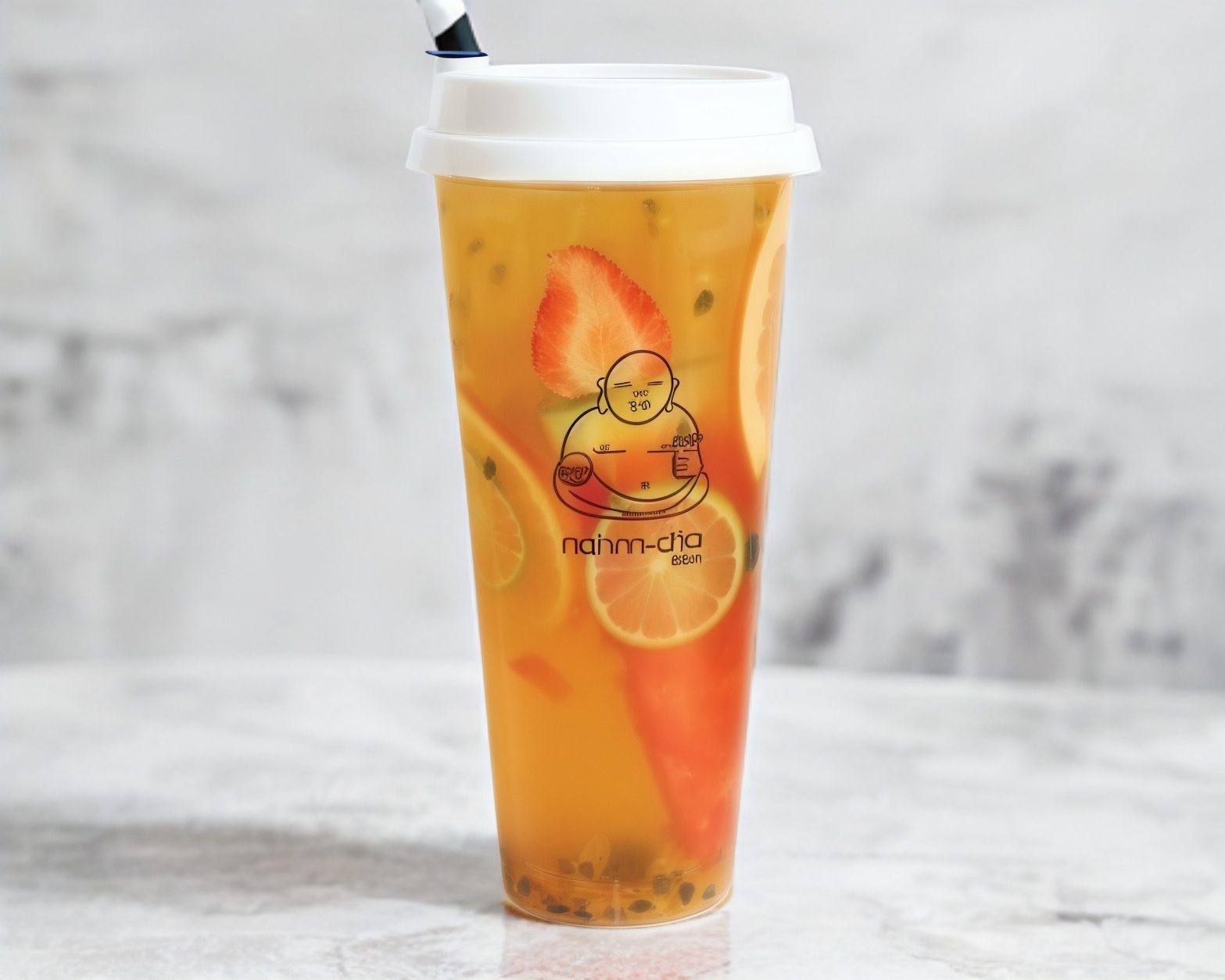 NO INCLUYE TAPIOCA. Disponible solo en tamaño 0.700 ml. Bebida refrescante a basé de té cuatro estaciones mezclada con pulpa natural de maracuyá, acompañado de rodajas de toronja, naranja, limón y sandia..