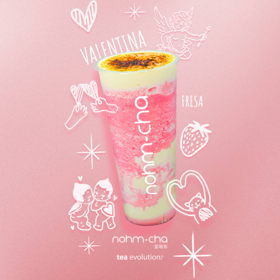 NO INCLUYE TAPIOCA. Delicioso te verde con pulpa de fresa, leche y mucha brulee para que te enamores todos los dias!!!