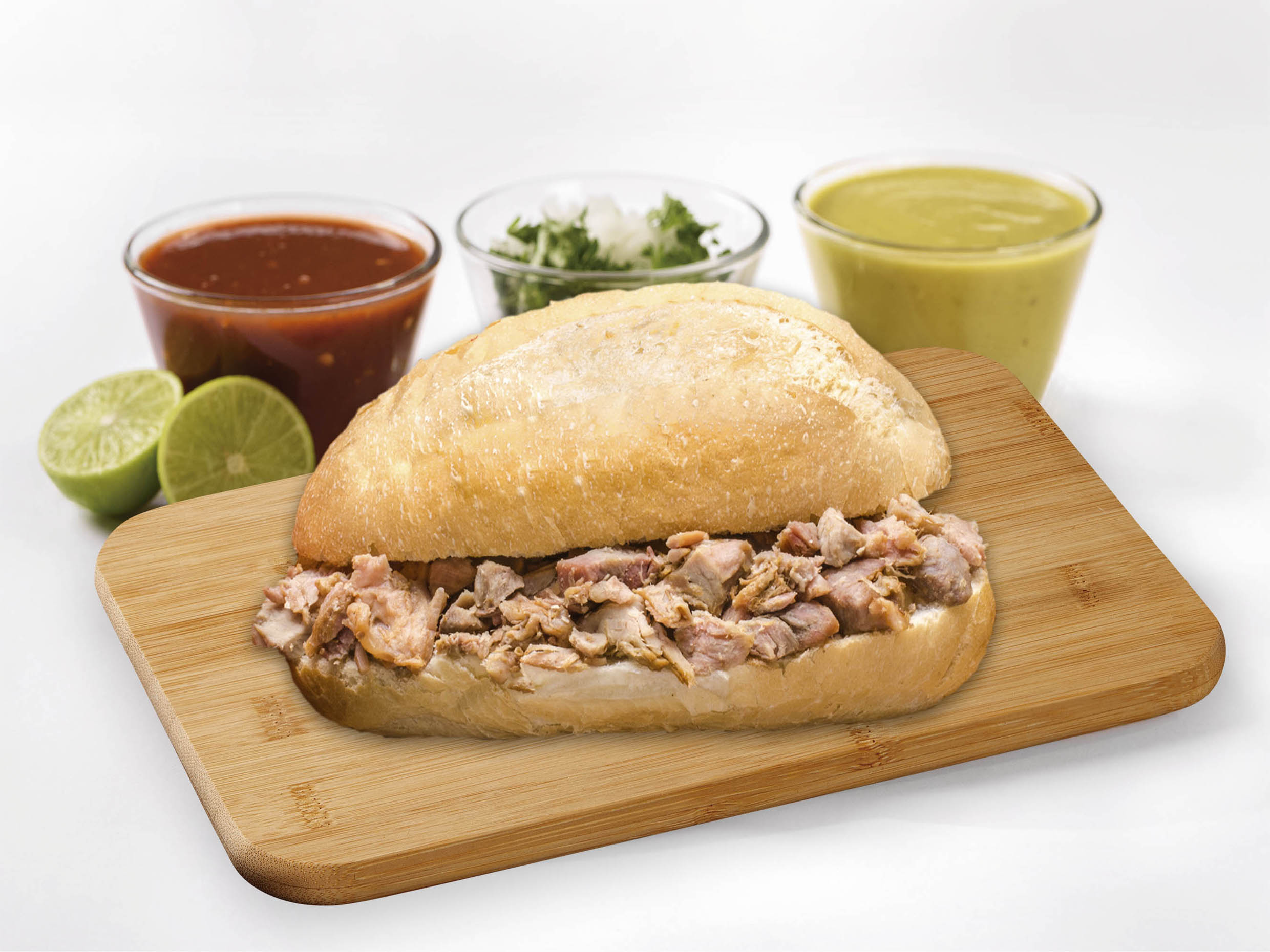 Pan blanco relleno con deliciosa Carne de Cerdo sazonada con nuestro toque especial cocinada lentamente